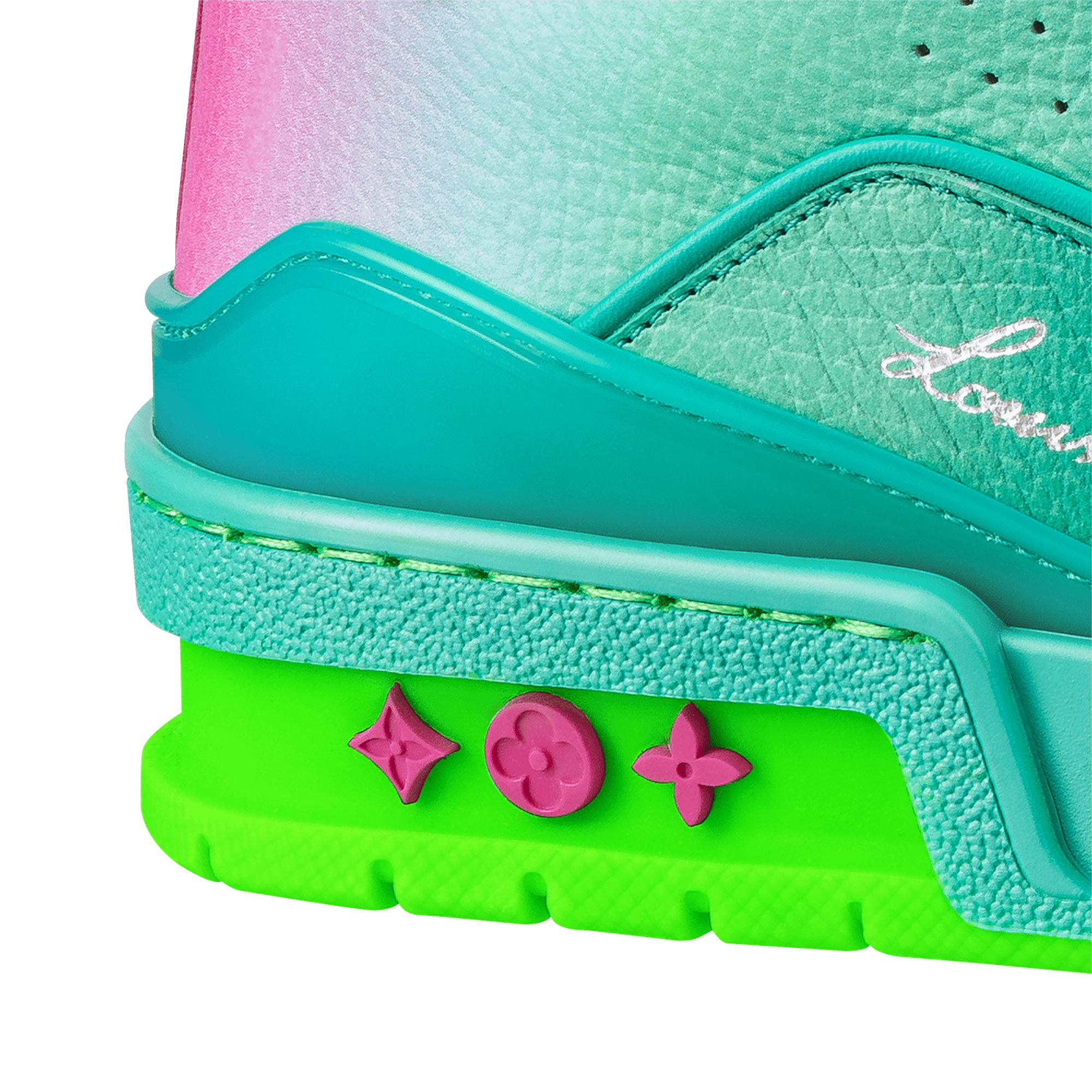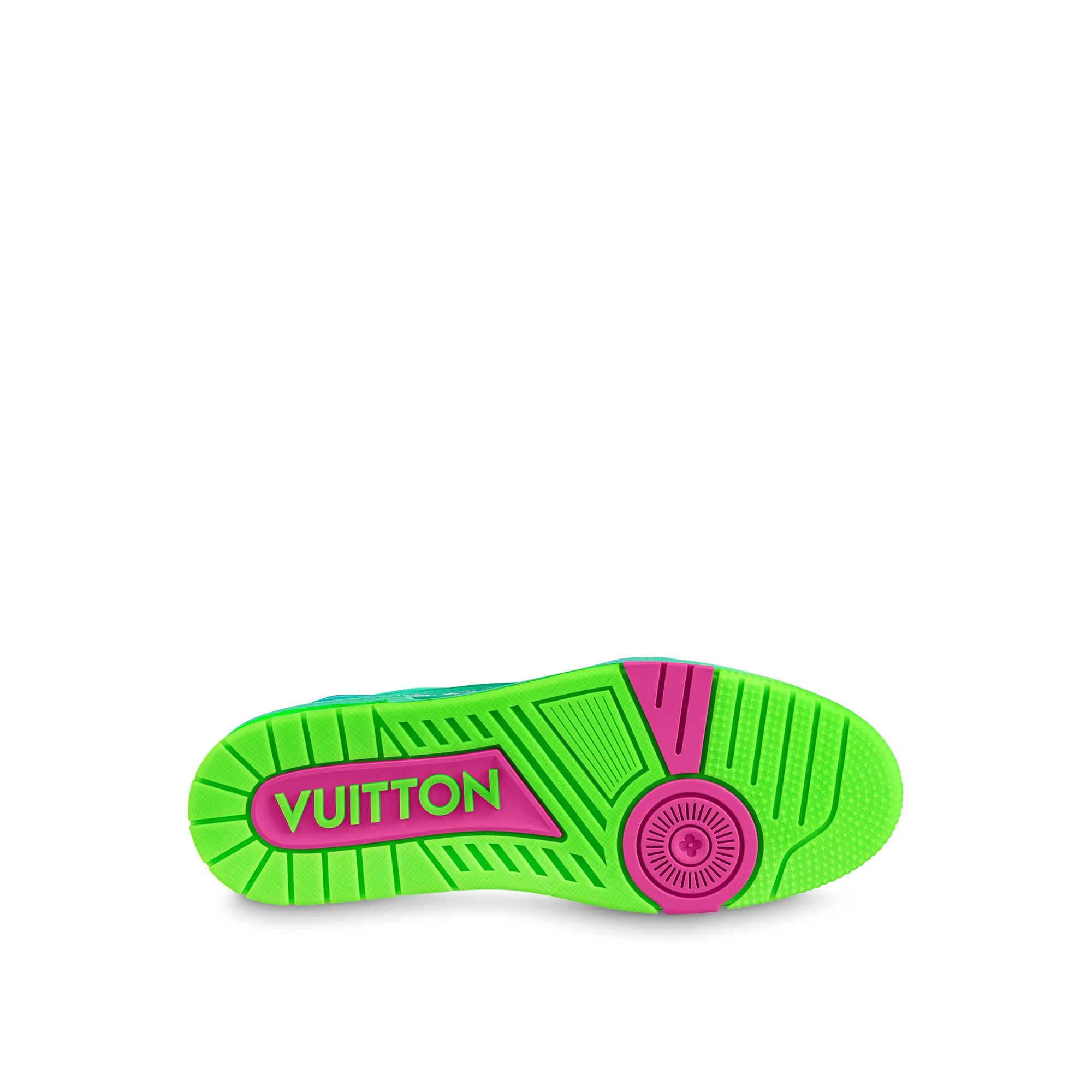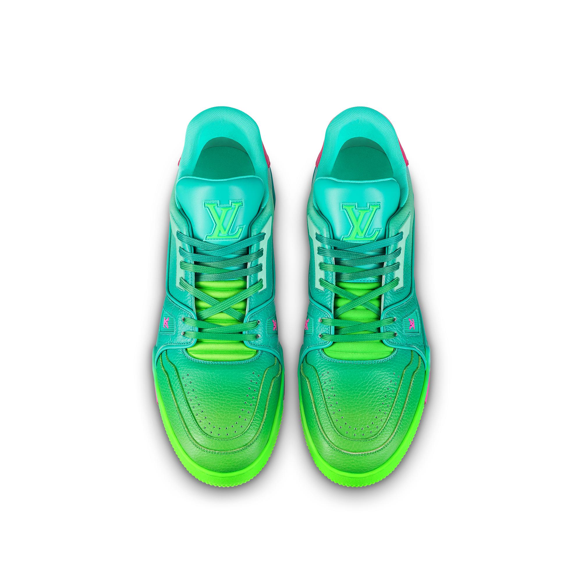 For the Louis Vuitton Spring-Summer 2022 show collection, the LV Trainer sneaker is revisited in grained calf leather with a colorful tie-dye effect, matching the season's Illusion Monogram theme. Inspired by vintage basketball sneakers, this iconic model, designed by Artistic Director Virgil Abloh, has an elaborately constructed upper which takes seven hours to stitch. Product details Green Grained calf leather 7 hours of stitching for one pair Rubber outsole LV Initials on the tongue and side Louis Vuitton script signature on the side #54 signature on the back Monogram Flowers on the outsole Made in Italy1A9TRS GreenLouis Vuitton LV Trainer Sneaker - Men - ShoesMen - Shoes - Sneakers - LV Trainer Sneaker