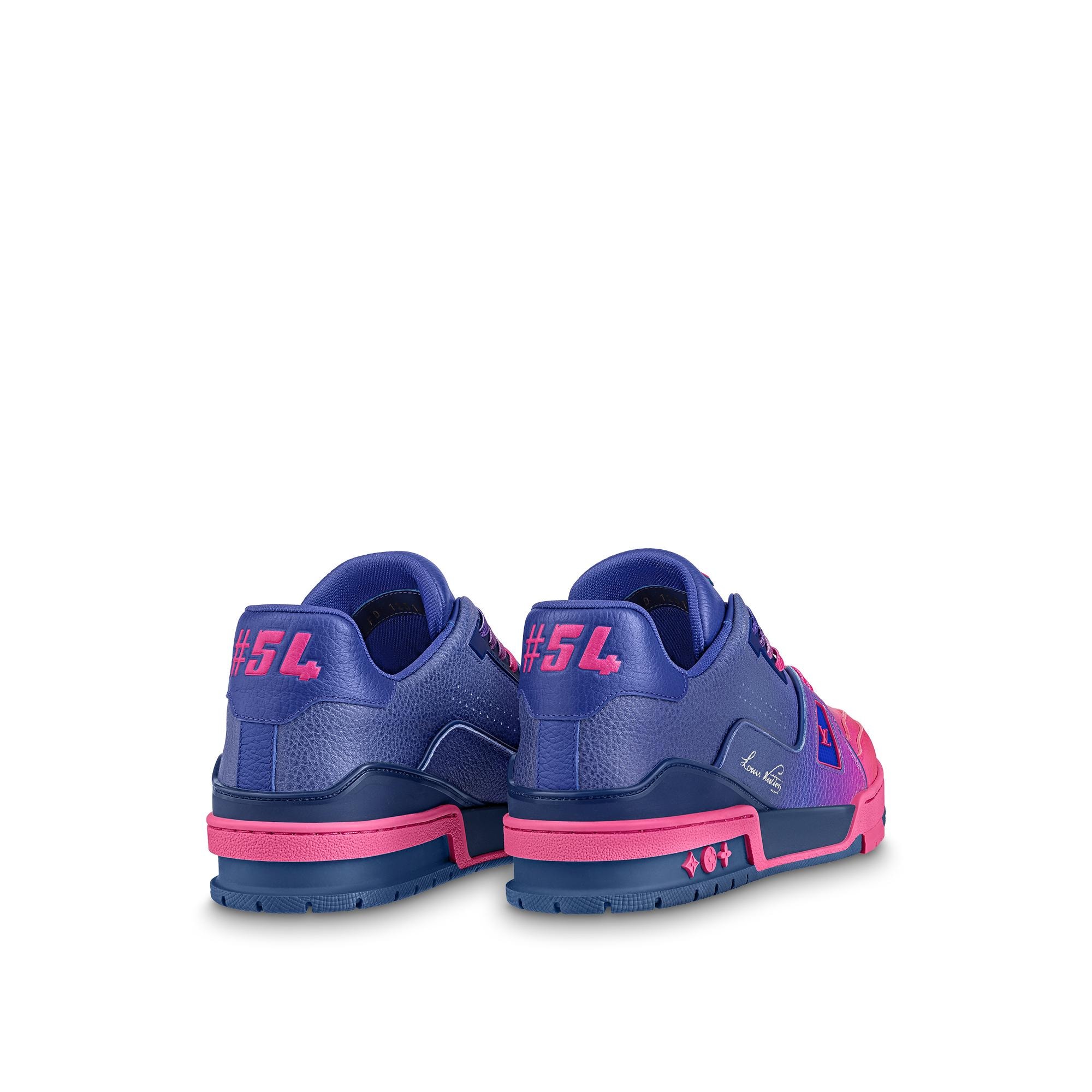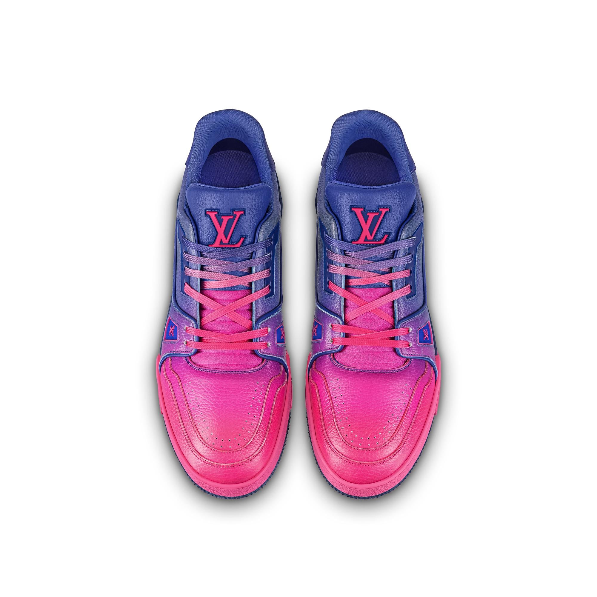 For the Louis Vuitton Spring-Summer 2022 show collection, the LV Trainer sneaker is revisited in grained calf leather with a colorful tie-dye effect, matching the season's Illusion Monogram theme. Inspired by vintage basketball sneakers, this iconic model, designed by Artistic Director Virgil Abloh, has an elaborately constructed upper which takes seven hours to stitch. Product details Pink Grained calf leather 7 hours of stitching for one pair Rubber outsole LV Initials on the tongue and side Louis Vuitton script signature on the side #54 signature on the back Monogram Flowers on the outsole Made in Italy1A9TSC PinkLouis Vuitton LV Trainer Sneaker - Men - ShoesMen - Shoes - Sneakers - LV Trainer Sneaker