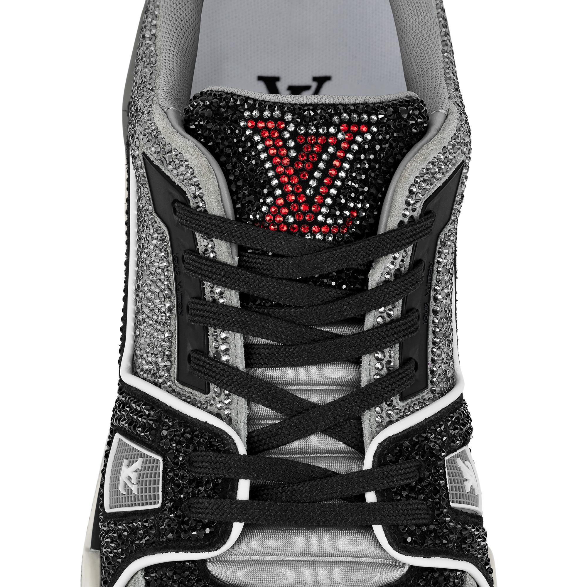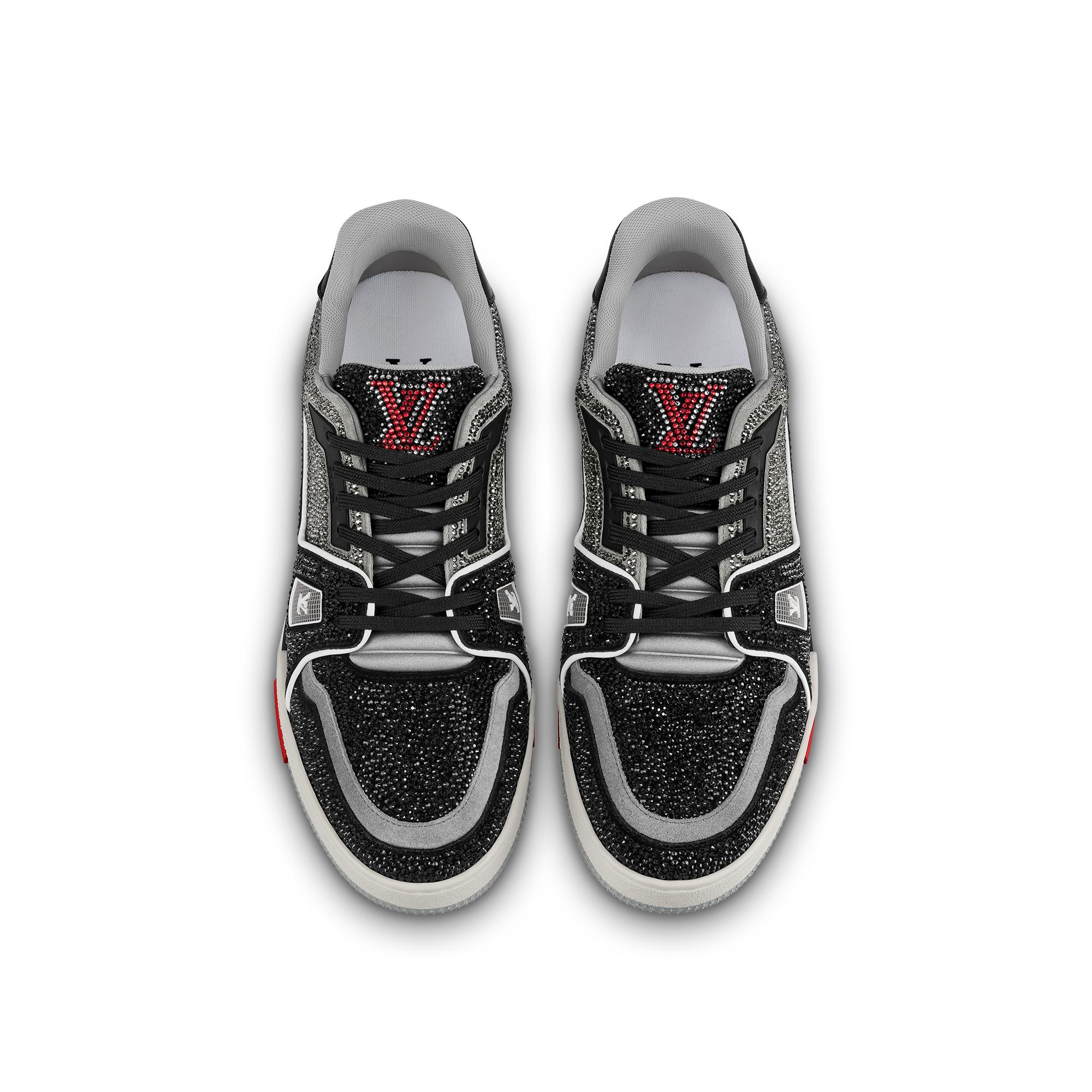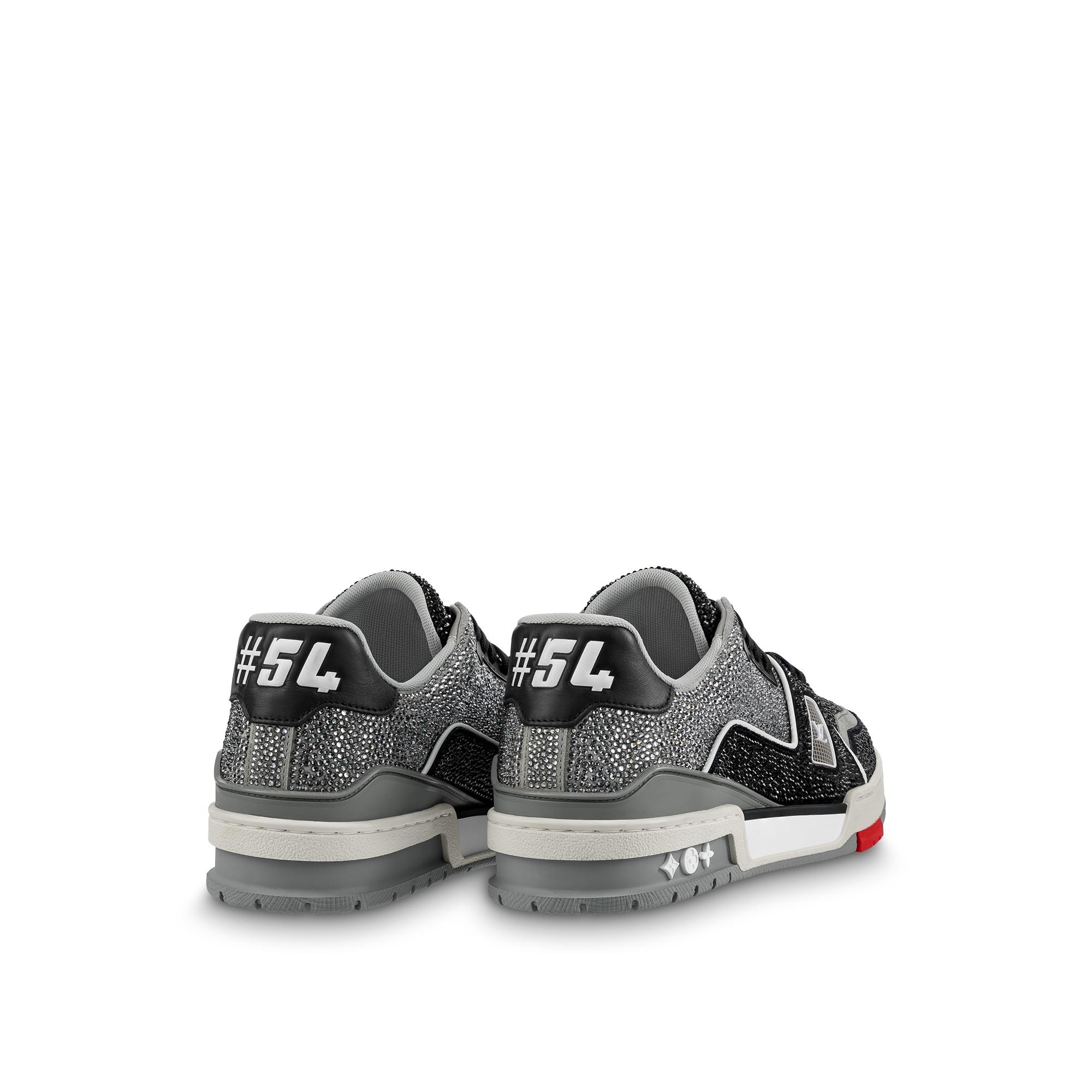 This exceptional edition of the LV Trainer sneaker is covered in sparkling rhinestones. This cult model, which was designed by Virgil Abloh, nods to vintage basketball sneakers. It is signed with the LV Initials on the tongue and side, while the #54 logo at the back refers to 1854, the year Louis Vuitton was founded. Product details Black Strass 7 hours of stitching for one pair Rubber outsole LV Initials on the tongue and side #54 signature on the back Monogram Flowers on the outsole Made in Italy1AA6PV Louis Vuitton LV Trainer Sneaker - Men - ShoesMen - Shoes - Sneakers - LV Trainer Sneaker