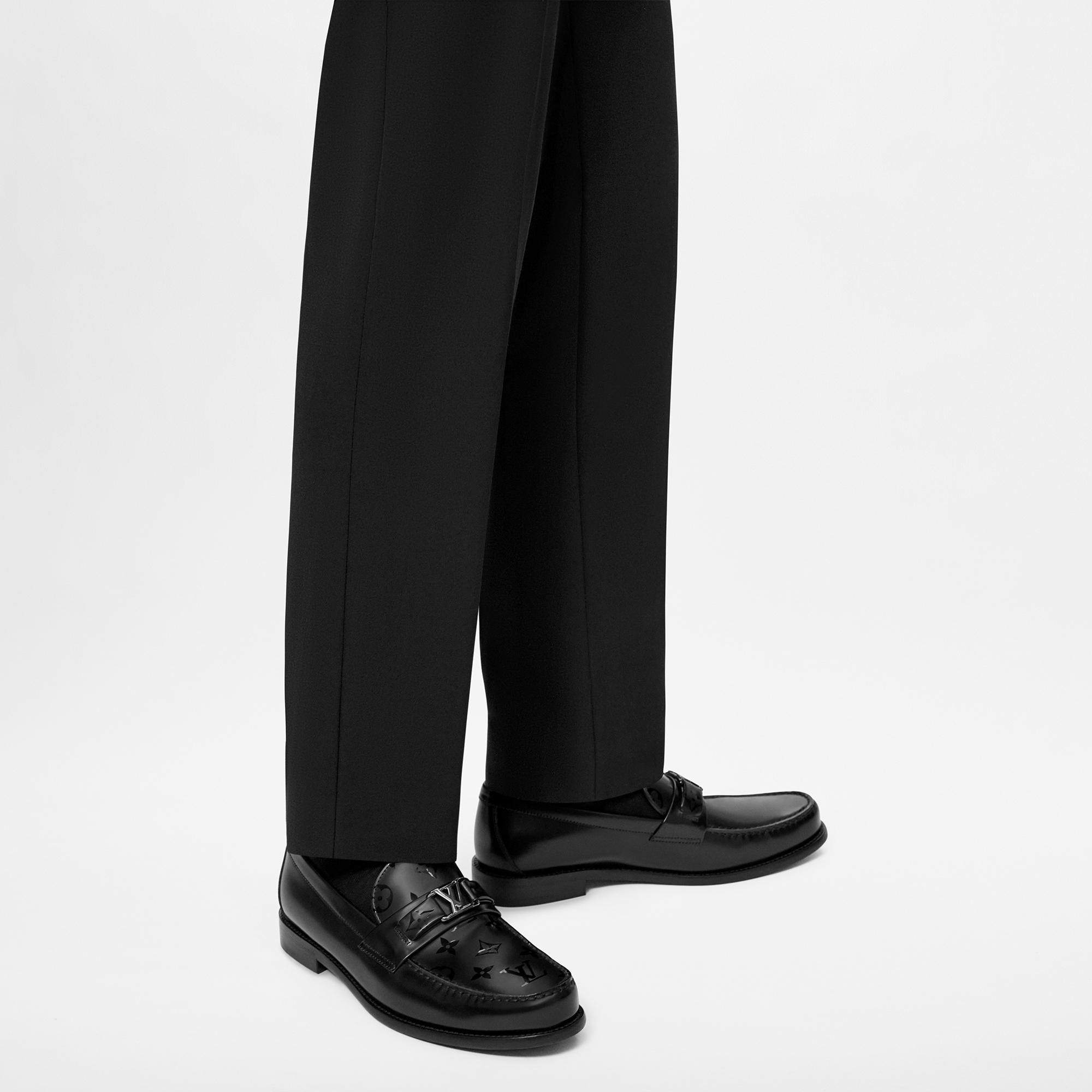 The Major loafer is reinterpreted in glazed calf leather with a vamp in Monogram metallic canvas, which is one of the key themes of the Spring-Summer 2022 collection. This timeless model has a traditional Blake construction and a hand-stitched vamp, both testaments to Louis Vuitton's shoemaking know-how. It is signed with an LV Initials accessory. Product details Black Glazed calf leather and Monogram metallic canvas Hand-stitched vamp (1 hour per pair) Blake construction Leather outsole with rubber insert LV Initials accessory Made in Italy1A9FMN Louis Vuitton Major loafer - Men - ShoesMen - Shoes - Loafers and Moccasins - Major Loafer