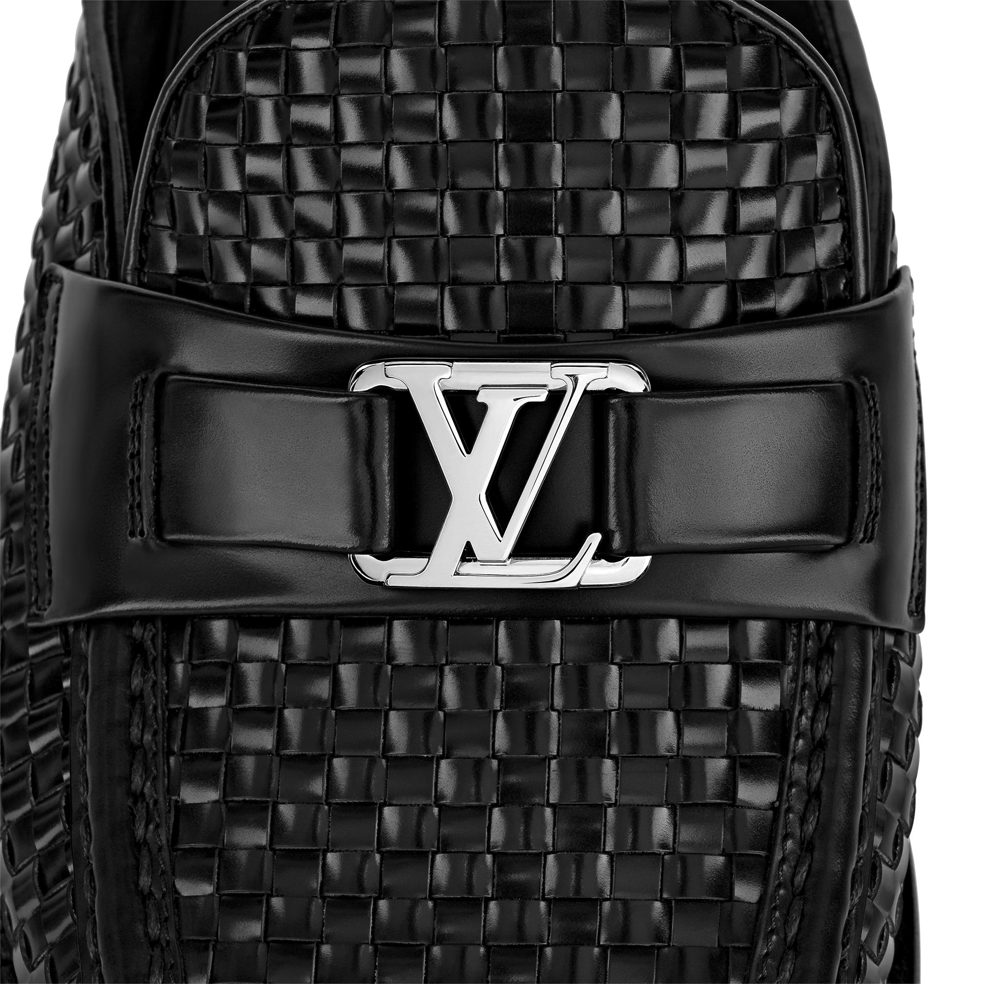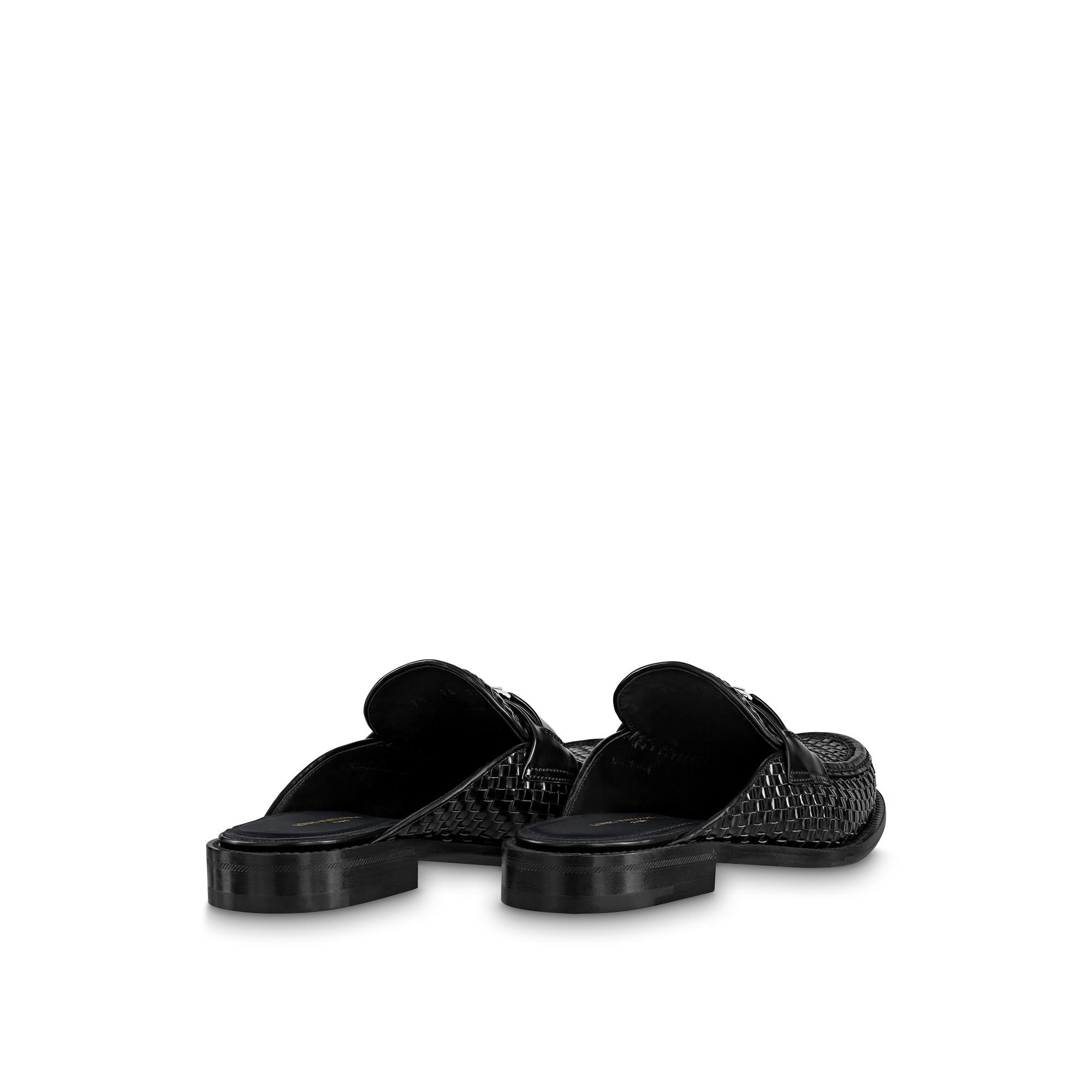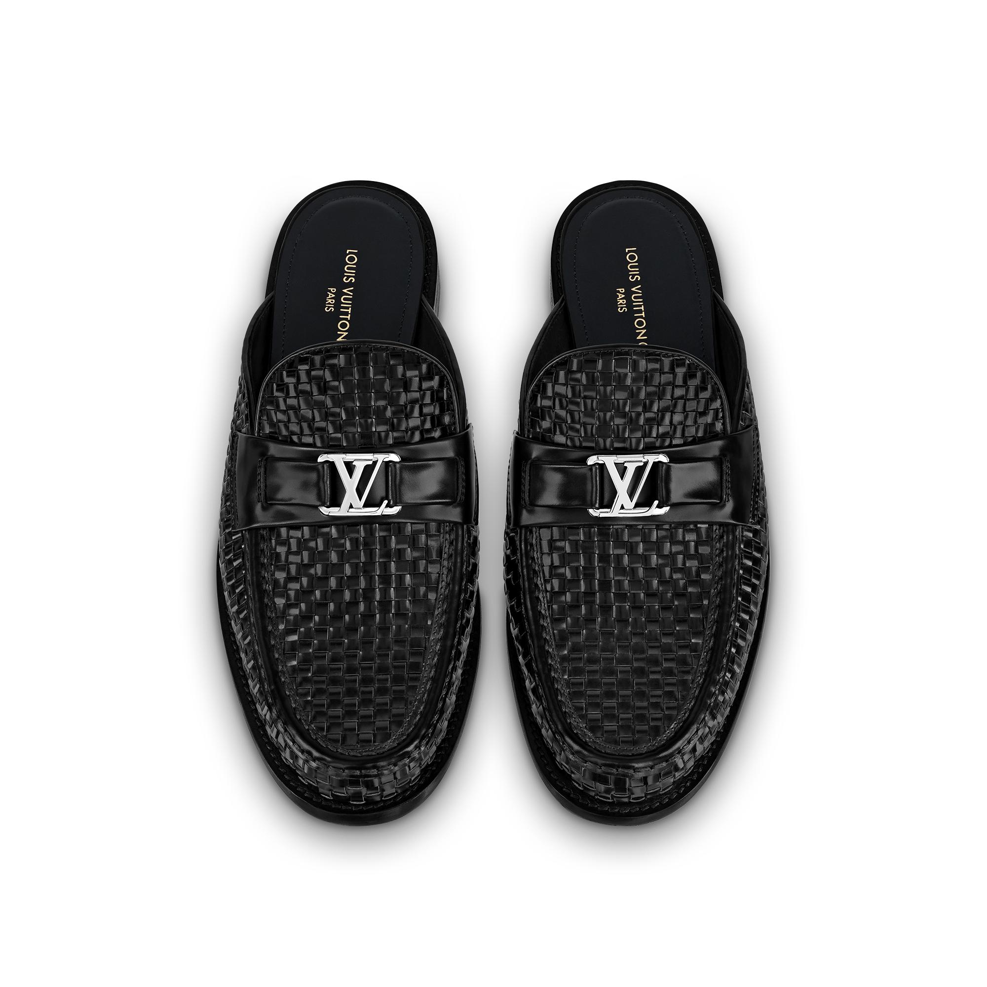 The Major open-back loafer brings a fashionable twist to a timeless style. The upper is crafted from braided glazed calf leather, which is complemented by a smooth leather strap embellished with a silver-tone LV Initials accessory. This slip-on model is finished with a durable leather and rubber outsole. Product details Black Braided glazed calf leather Hand-stitched vamp (1 hour per pair) Blake construction Leather and rubber outsole LV Initials accessory Made in Italy1A9ZVZ Louis Vuitton Major Open Back Loafer - Men - ShoesMen - Shoes - Loafers and Moccasins - Major Open Back Loafer