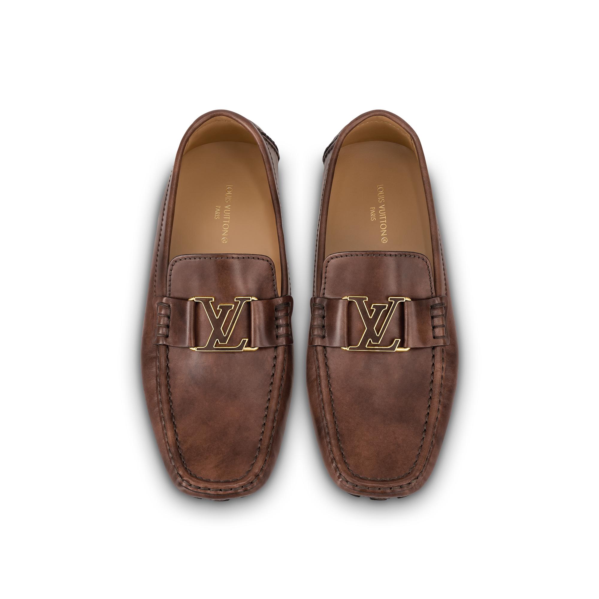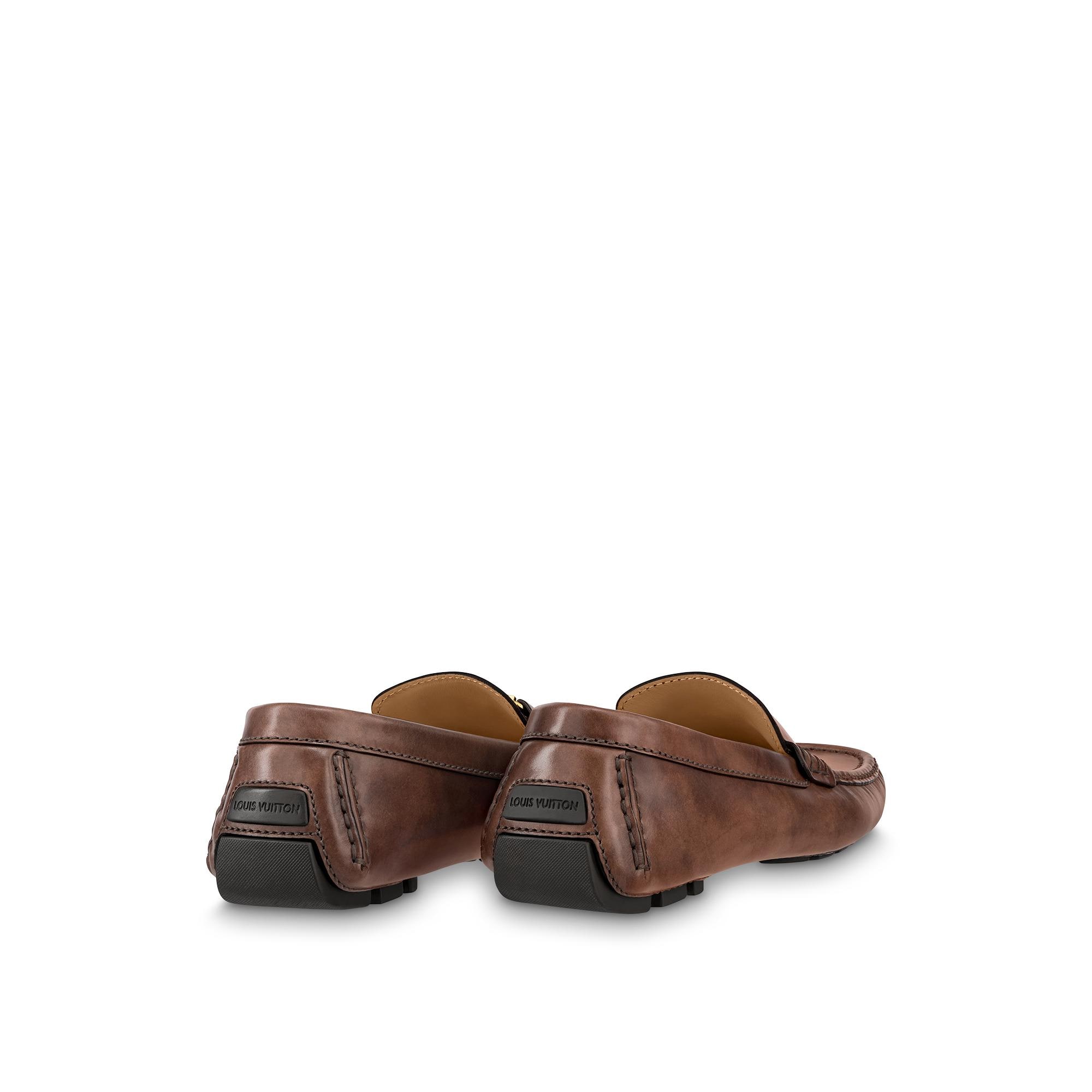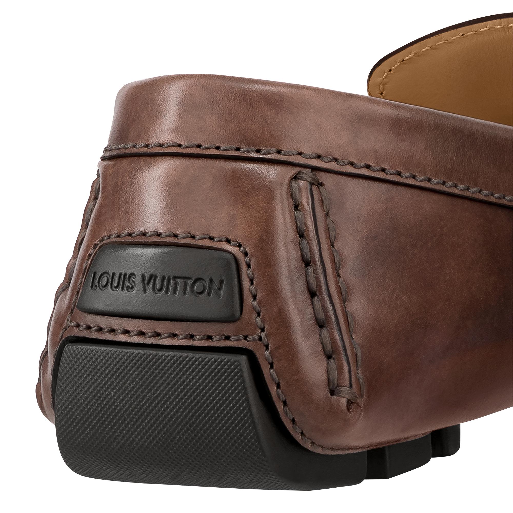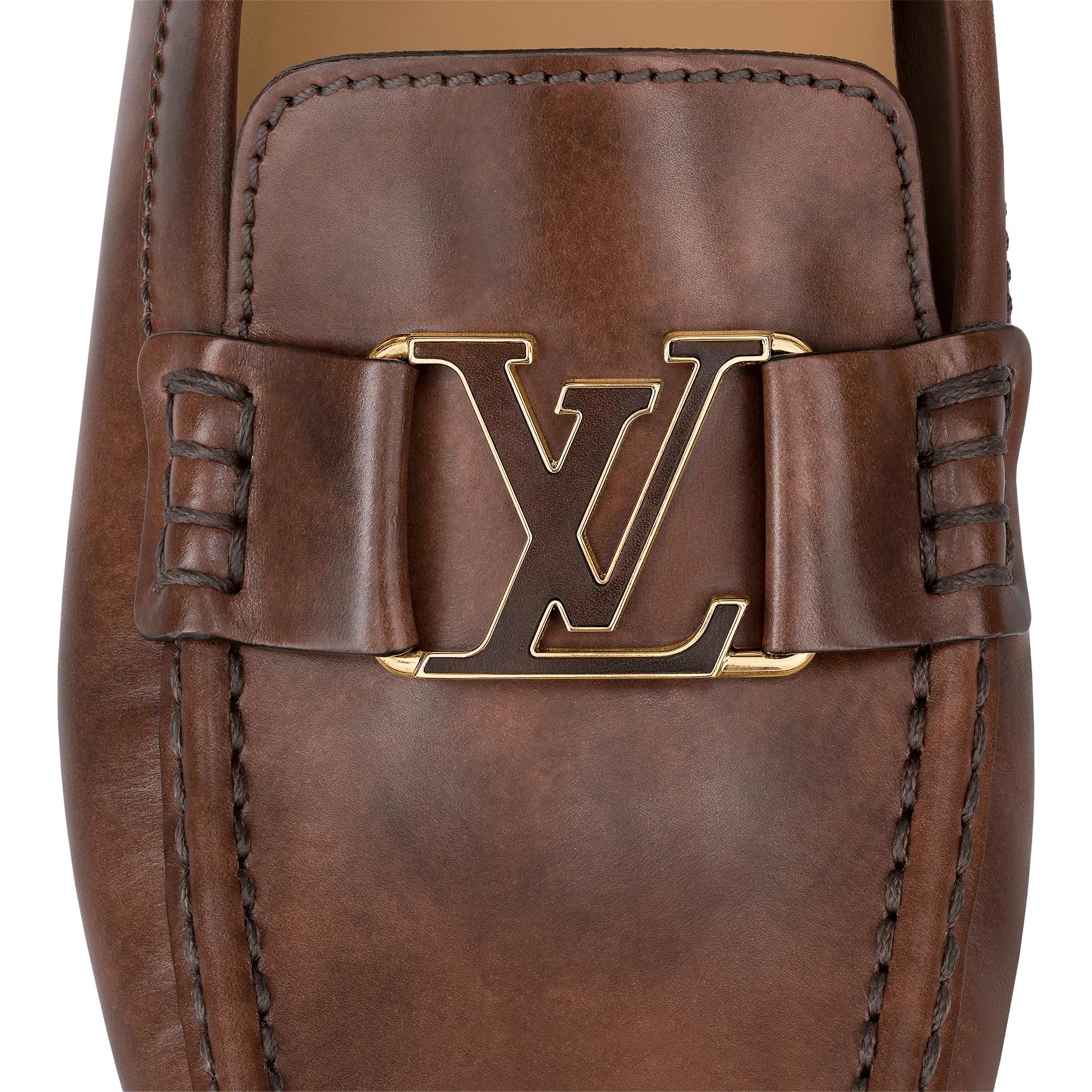 This refined interpretation of the Monte Carlo moccasin comes in waxed calf leather with a hand-crafted patina. This iconic style is characterized by its hand-stitched vamp and tubular construction, with no insole, which provides exceptional comfort and flexibility. It is finished with an LV Initials accessory inlaid with leather. Product details Cognac Brown Waxed calf leather Hand-crafted patina Hand-stitched vamp (1 hour per pair) Tubular construction Outsole with large rubber pads LV Initials accessory Made in Italy1A9I23 Louis Vuitton Monte Carlo Mocassin - Men - ShoesMen - Shoes - Loafers and Moccasins - Monte Carlo Mocassin