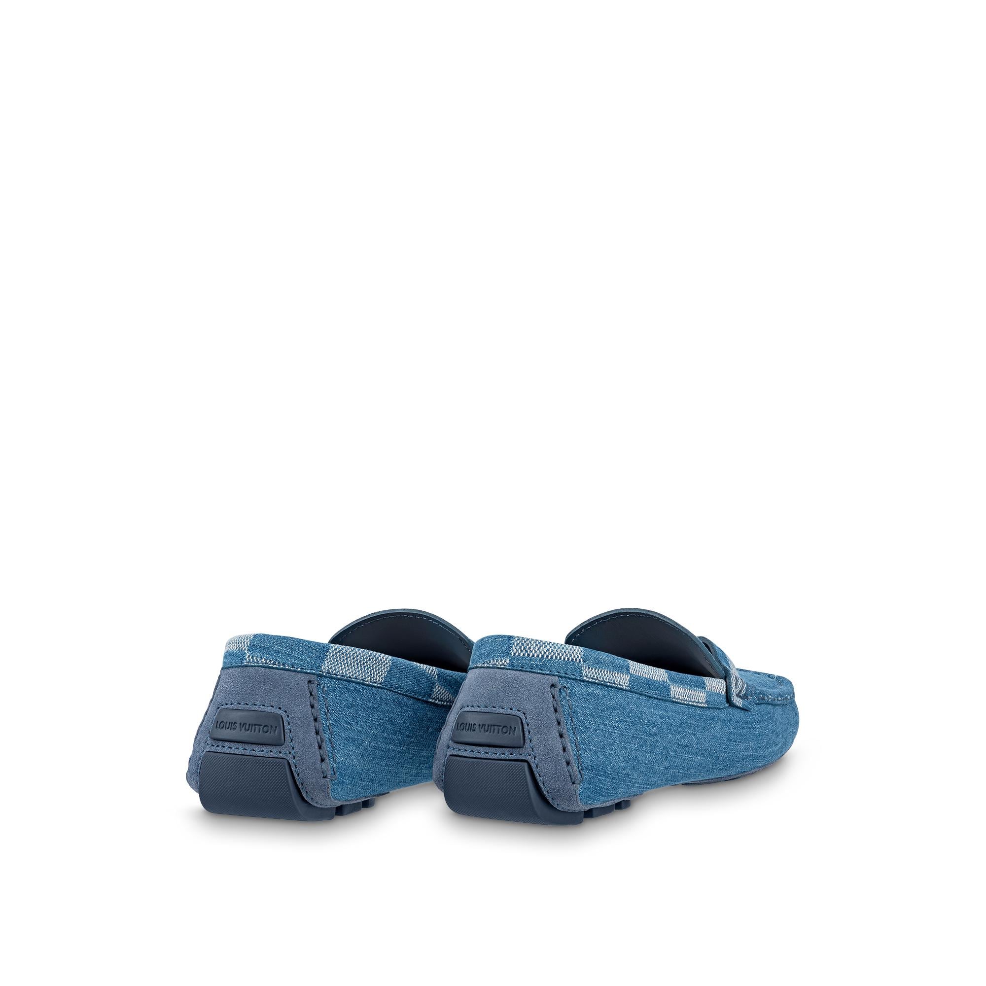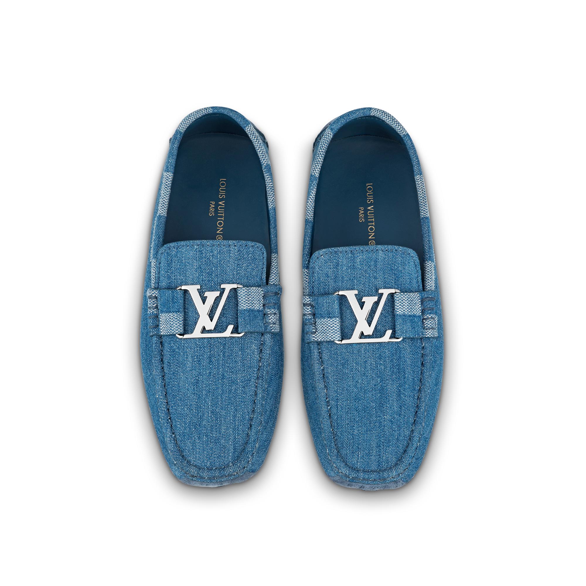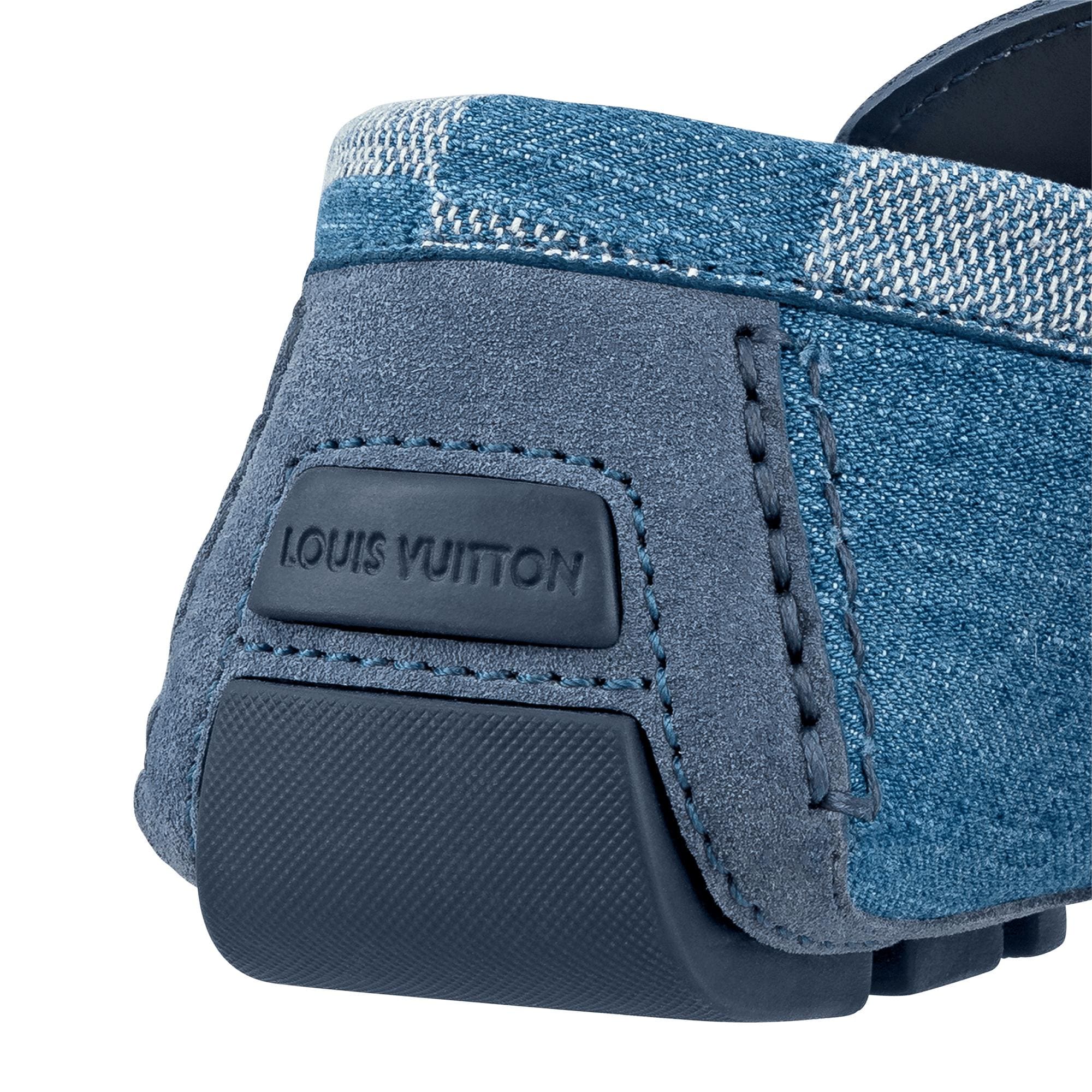 This relaxed interpretation of the Monte Carlo moccasin comes in denim with an oversized Damier pattern on the strap and collar. The hand-stitched vamp is signed with a silver-tone LV Initials accessory. This model has a tubular construction with no insole for suppleness and lightness, and an outsole with large rubber pads at the front and back. Product details Blue Denim Hand-stitched vamp (1 hour per pair) Tubular construction Outsole with large rubber pads LV Initials accessory Made in Italy1A9YQL Louis Vuitton Monte Carlo Mocassin - Men - ShoesMen - Shoes - Loafers and Moccasins - Monte Carlo Mocassin
