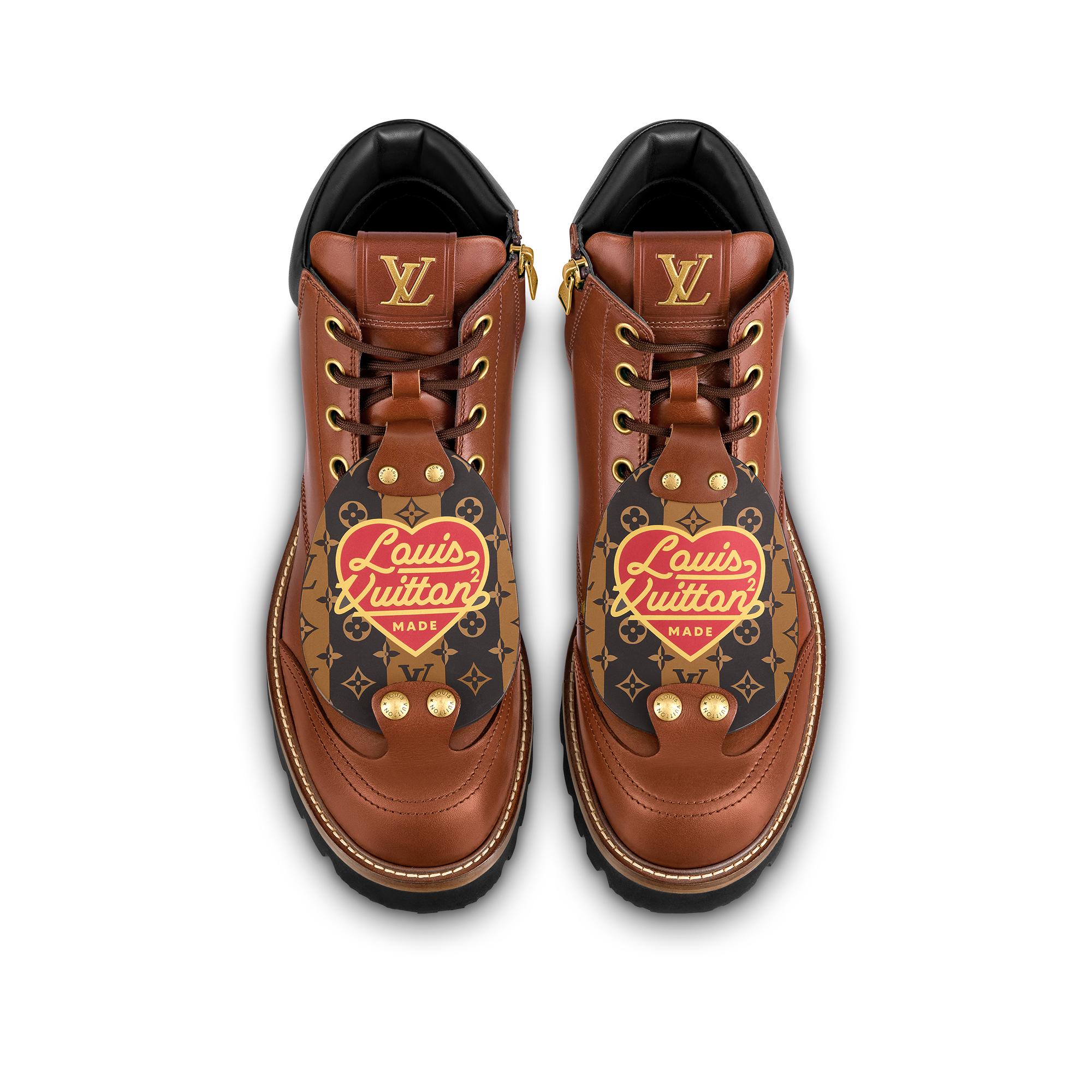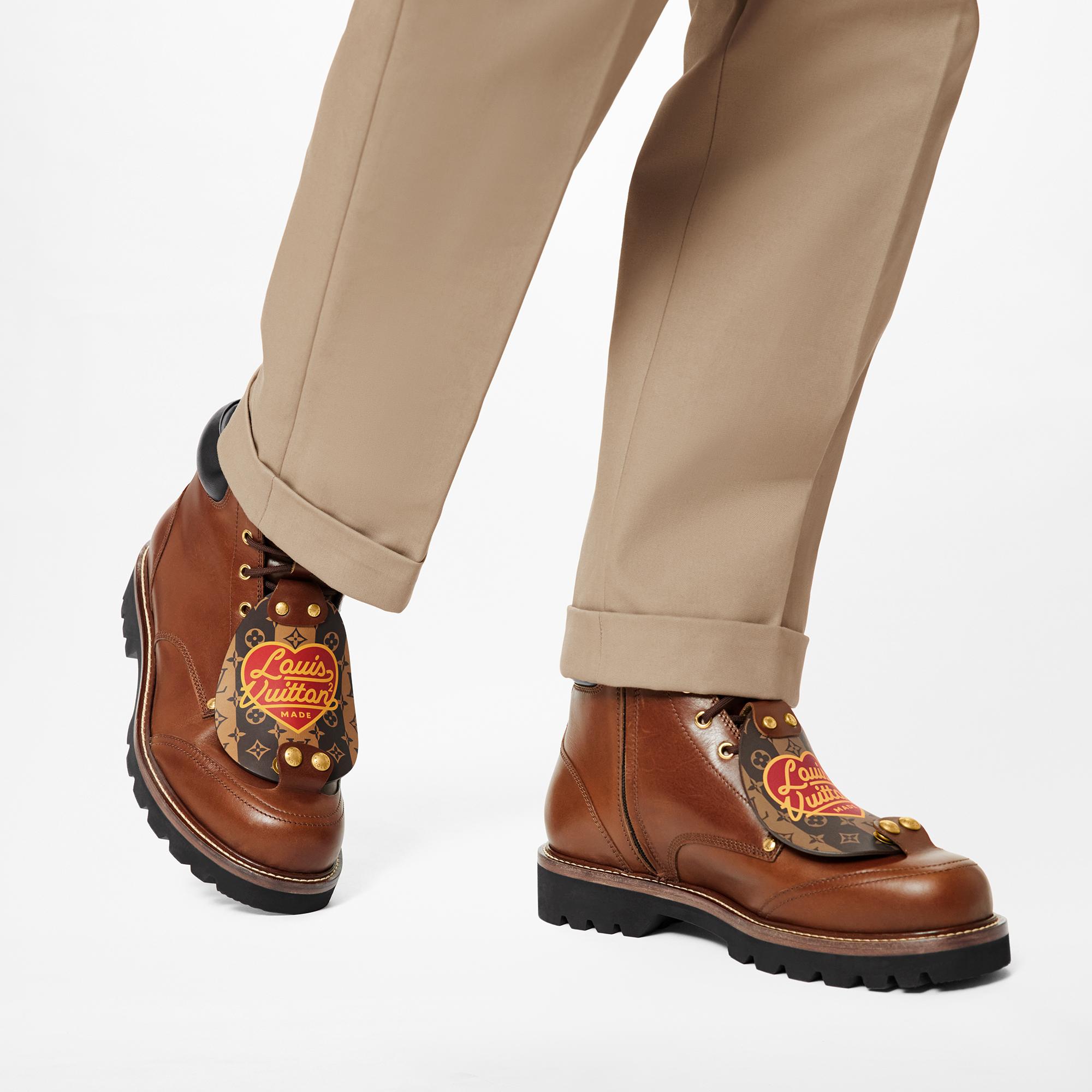 This version of the emblematic Oberkampf ankle boot is part of Louis Vuitton's second collaboration with the Japanese designer Nigo, which encompasses ready-to-wear, leather goods and accessories. Nigo's instinctive fusion of British dandy and Japanese street culture has established him as a uniquely influential figure, at the crossroads of fine art and fashion. Crafted from supple calf leather, this model features patches with Louis Vuitton x Nigo signatures. Attached with press-studs, they can be removed or interchanged to create different looks. Product details Moka Brown Calf leather Treaded micro rubber outsole Removable Louis Vuitton x Nigo patches LV Initials on the tongue Made in Italy1A9ID8 MochaLouis Vuitton Oberkampf ankle boot - Men - ShoesMen - Shoes - Boots - Oberkampf Ankle Boot