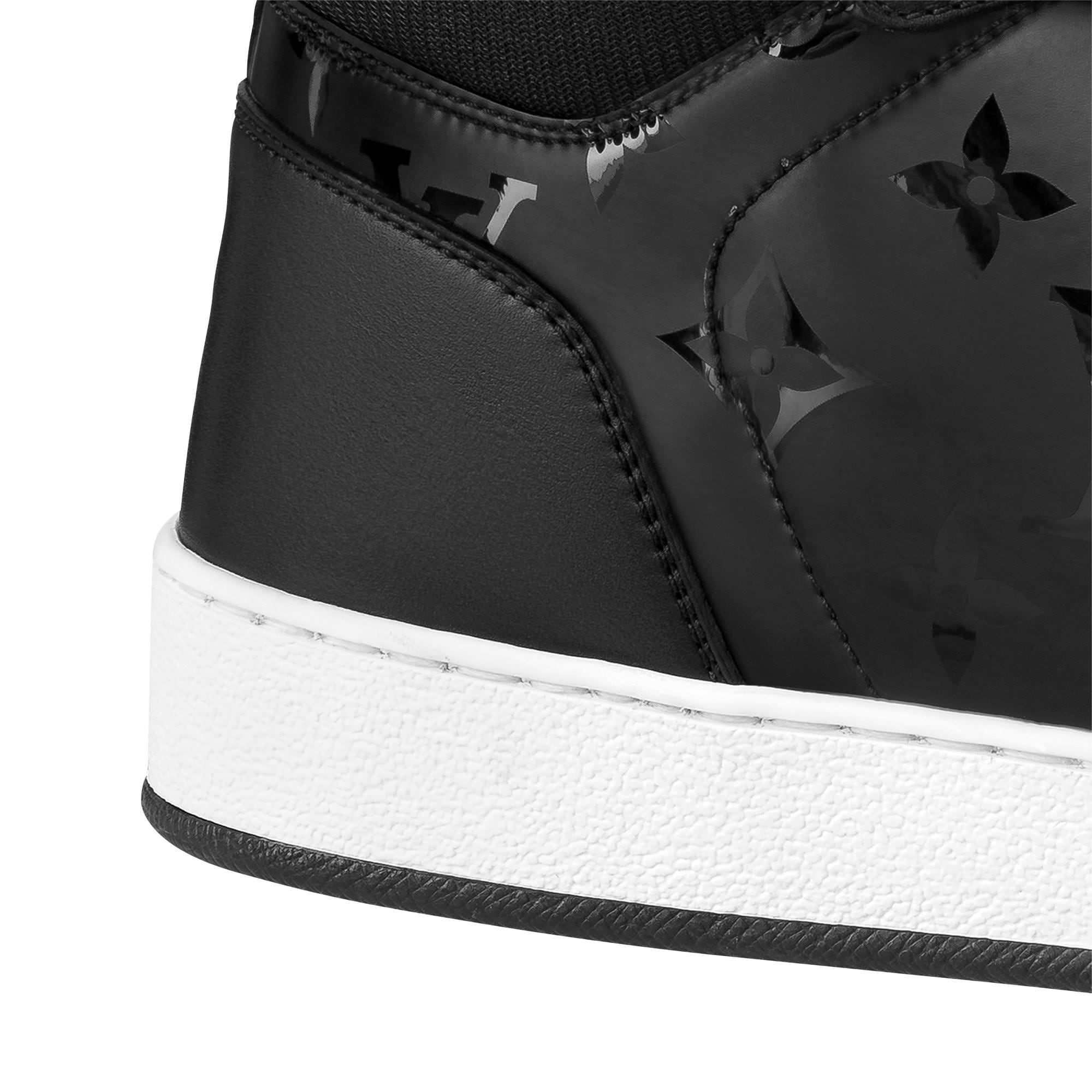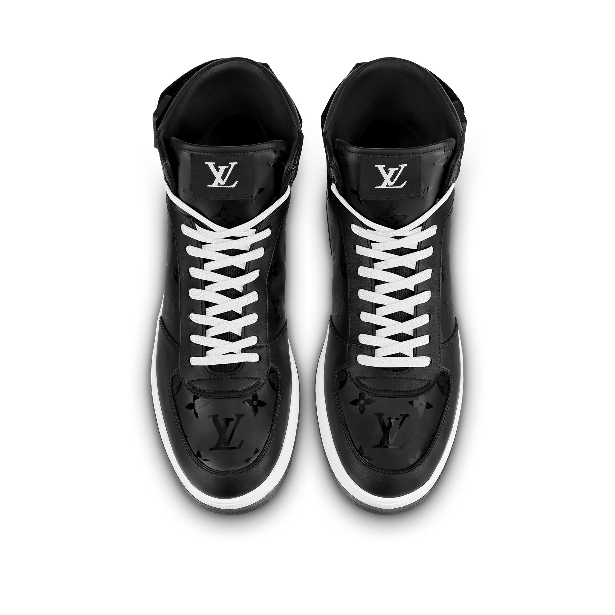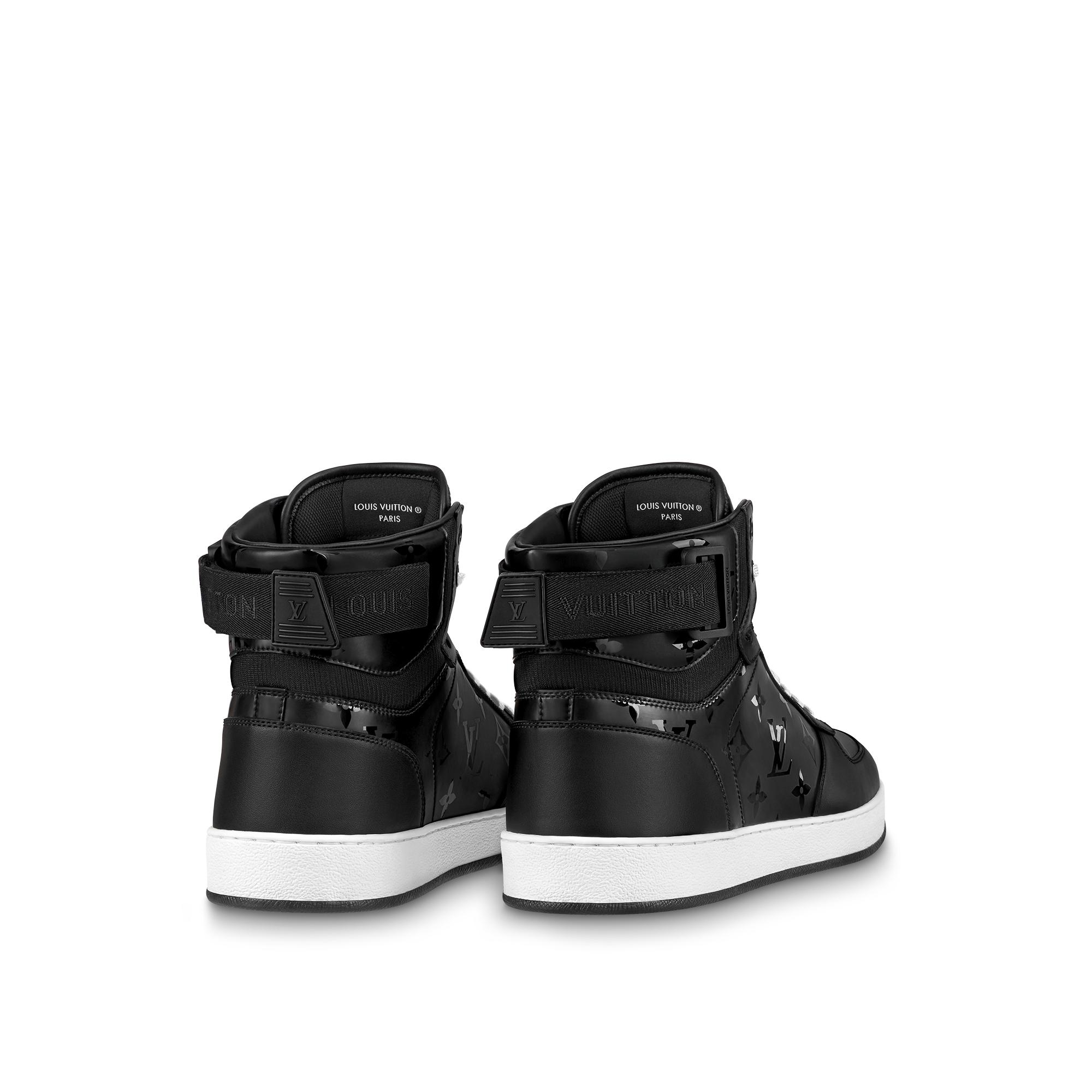 This version of the Rivoli sneaker boot combines calf leather with Monogram metallic canvas, which is a key theme of the season. This classic hi-top has a padded collar for comfort and a shape-memory anatomic insole, which can be removed to dry. The velcro strap with the Louis Vuitton signature can be worn at the front or back of the sneaker. Product details Black Calf leather and Monogram metallic canvas Removable, shape-memory anatomic insole Rubber outsole LV Initials on the tongue Louis Vuitton signature on the strap Made in Italy1A9J59 Louis Vuitton Rivoli Sneaker Boot - Men - ShoesMen - Shoes - Sneakers - Rivoli Sneaker Boot