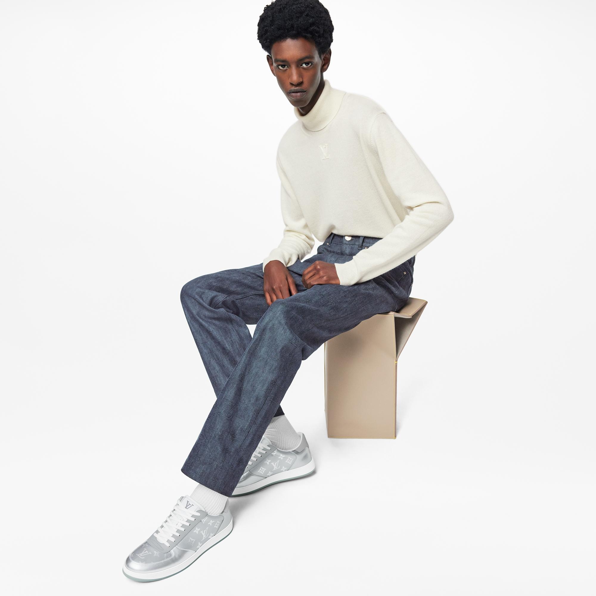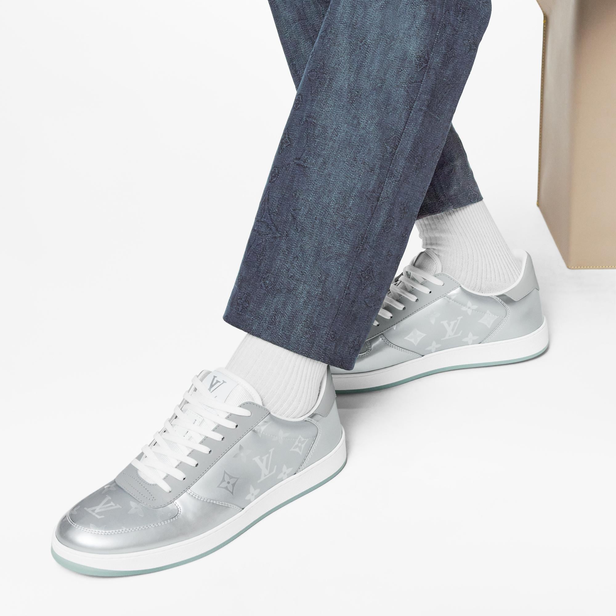 The classic Rivoli sneaker is revisited in a combination of metallic and Monogram metallic canvas, which is one of the key themes of the season. The silver upper is complemented by white laces and a transparent rubber outsole. This sneaker features a shape-memory anatomic insole, which can be removed to dry. Product details Silver Monogram metallic canvas Removable, shape-memory anatomic insole Transparent rubber outsole LV Initials on the tongue Louis Vuitton Paris signature at the back Made in Italy1A9GXE Louis Vuitton Rivoli Sneaker - Men - ShoesMen - Shoes - Sneakers - Rivoli Sneaker