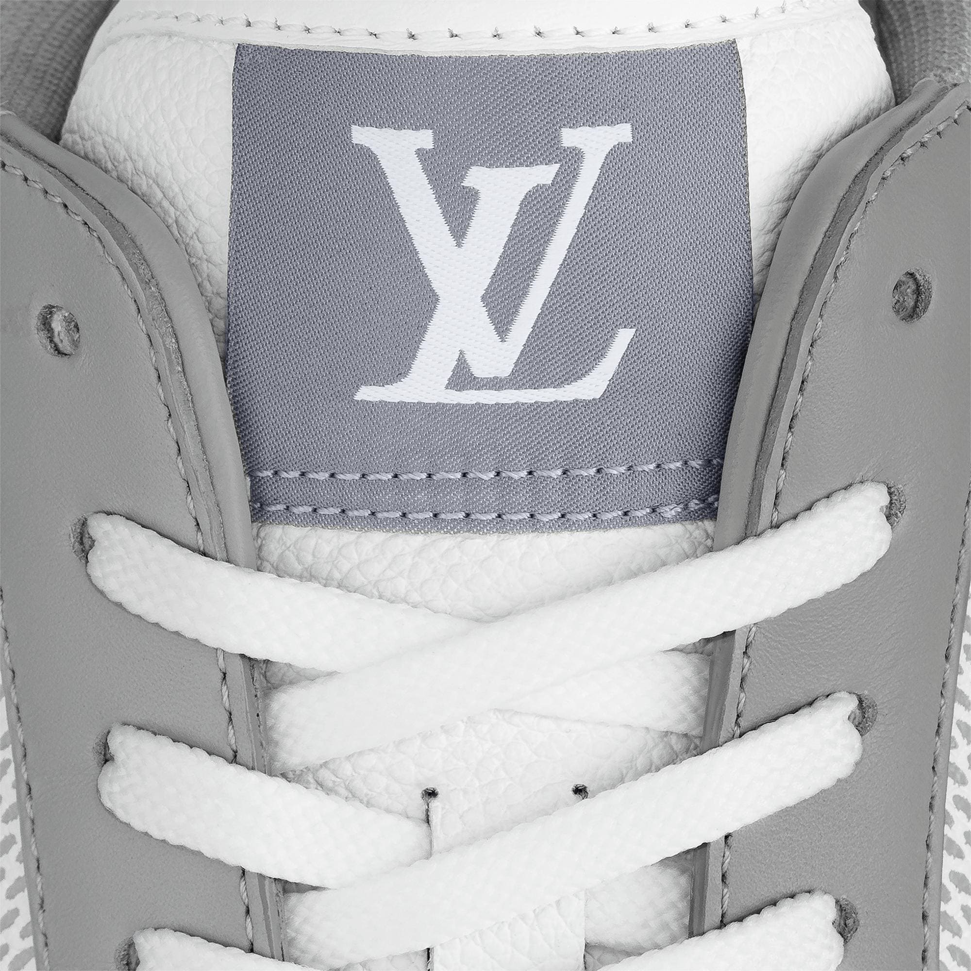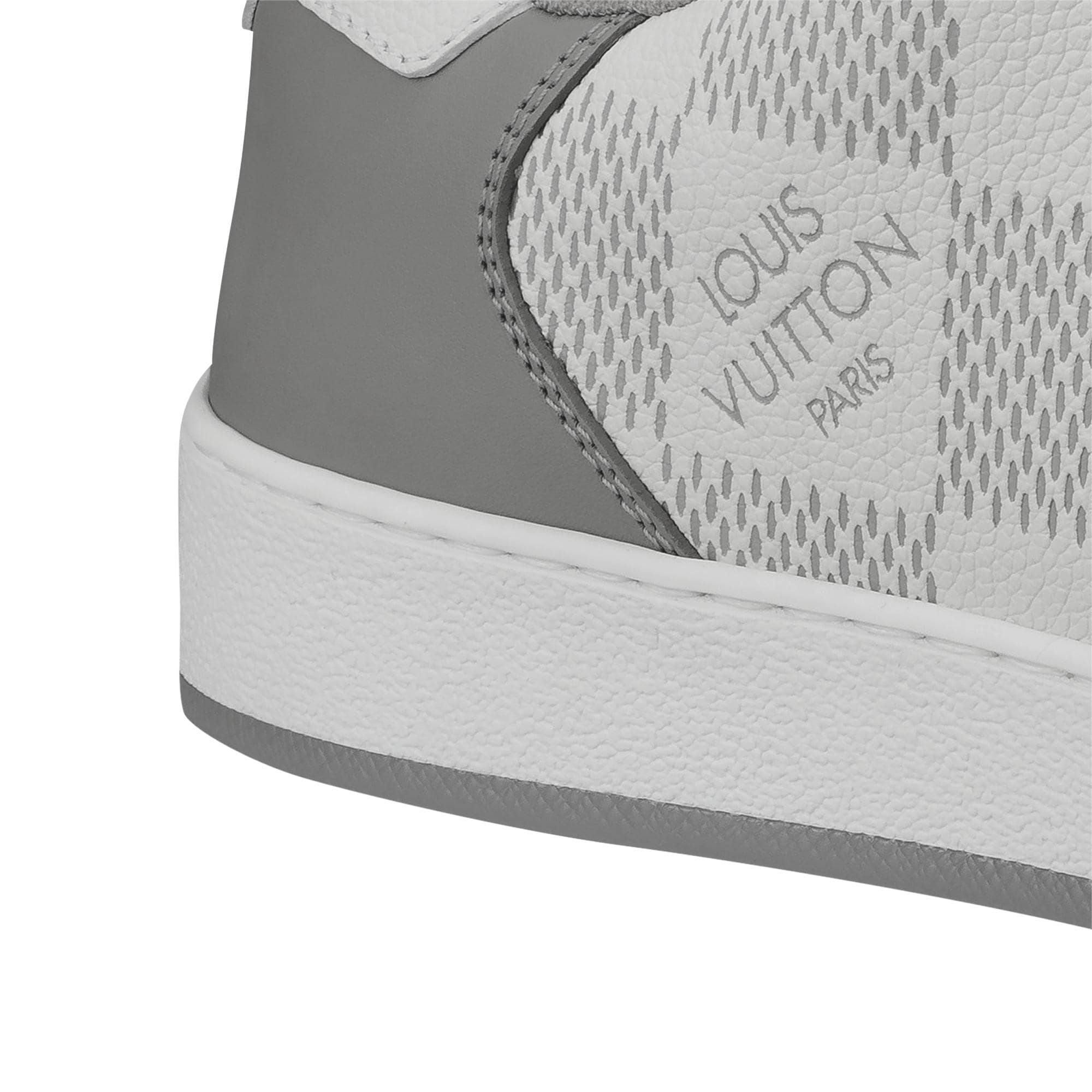 One of Louis Vuitton's emblematic styles, the Rivoli sneaker is reinterpreted in grained calf leather with an oversized Damier pattern. The design incorporates the Louis Vuitton Paris signature on the side, while the back is printed with a Monogram Flower. This model is finished with white laces and a bicolor rubber outsole. Product details Gray Maxi Damier grained calf leather Removable, shape-memory anatomic insole Rubber outsole LV Initials on the tongue Monogram Flower at the back Made in Italy1A9ZEO Louis Vuitton Rivoli Sneaker - Men - ShoesMen - Shoes - Sneakers - Rivoli Sneaker