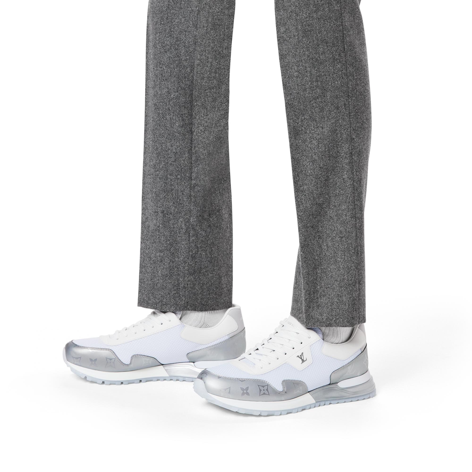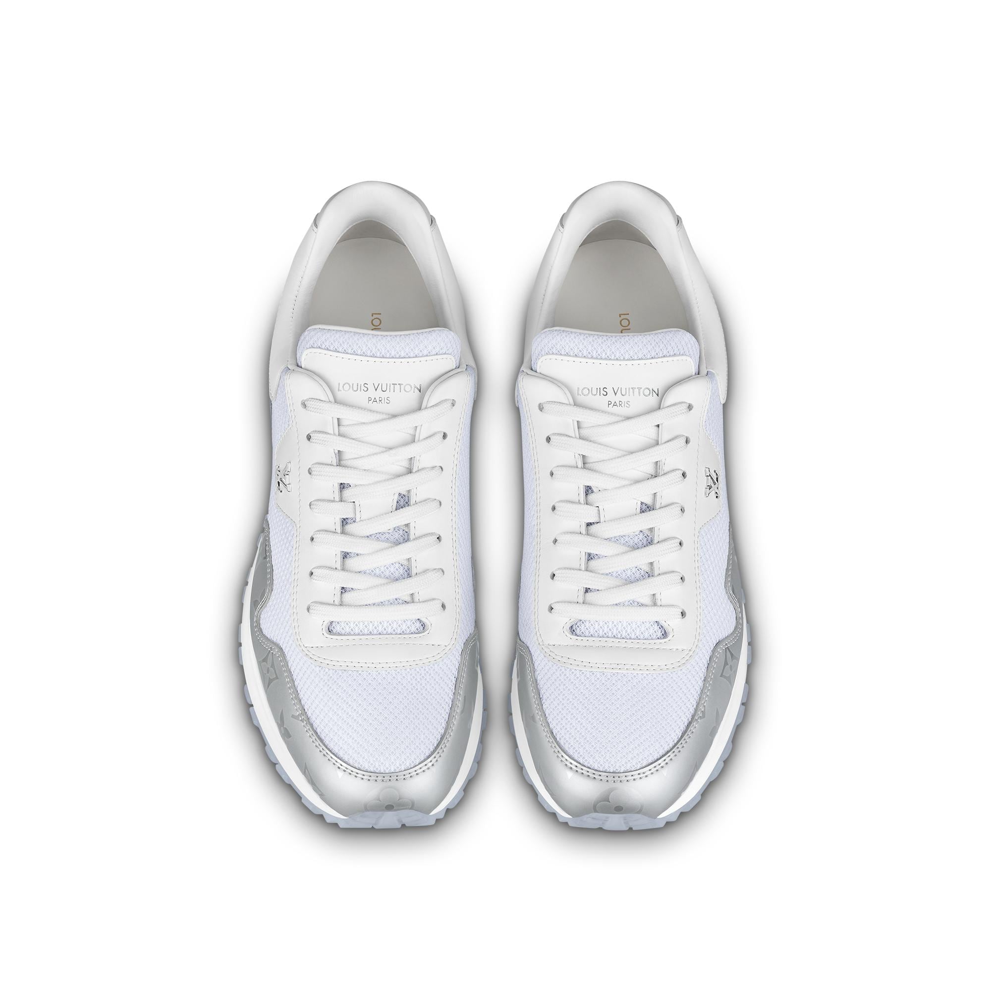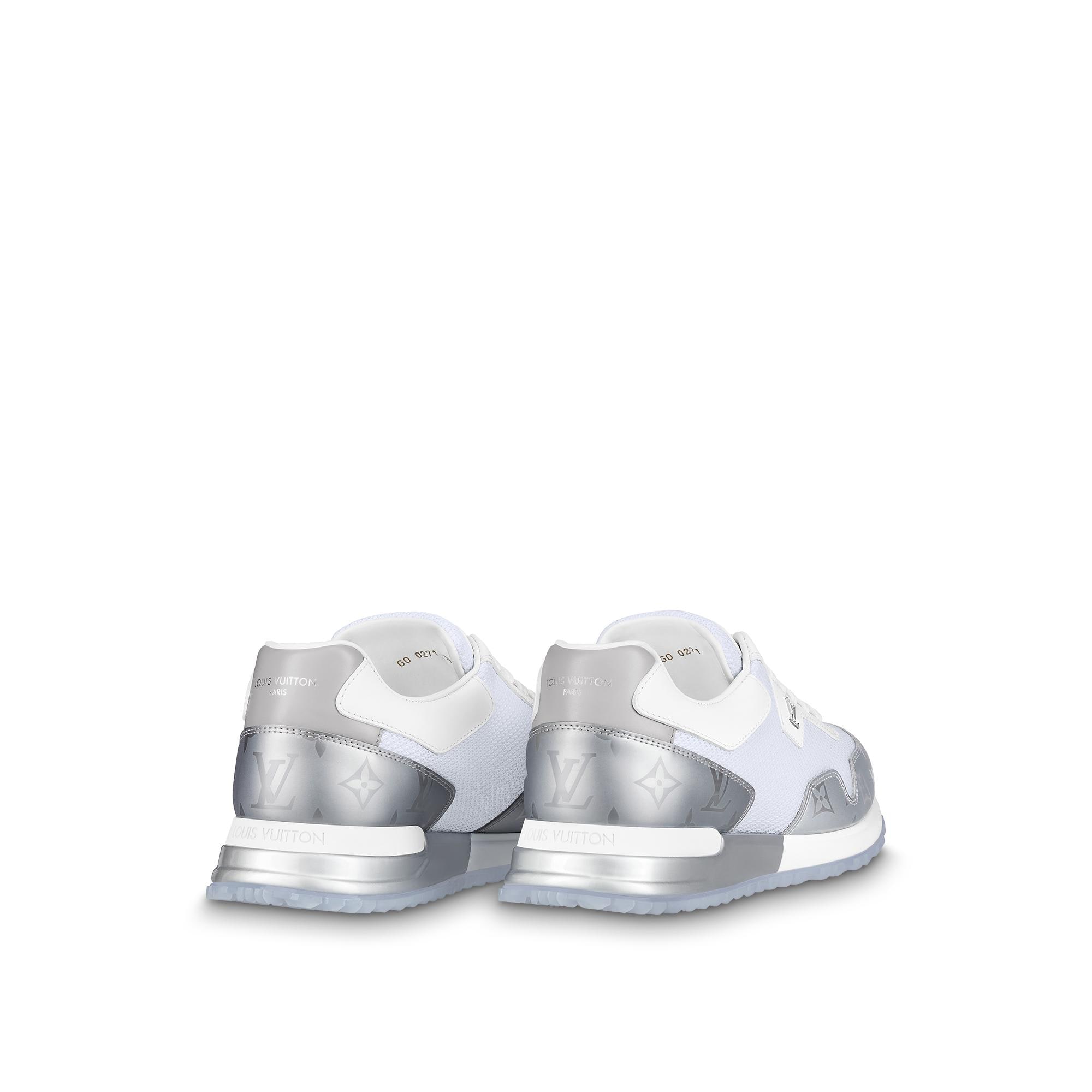 This reinterpretation of the emblematic Run Away sneaker combines technical mesh with Monogram metallic canvas, which is a key theme of the season's men's collection. This model, which was inspired by running shoes, is notable for its lightweight, transparent rubber outsole. It is complemented by a silver-tone LV Initials accessory on the side. Product details White Mesh and Monogram metallic canvas Transparent rubber outsole LV Initials accessory on the side Louis Vuitton signature on the tongue and back Made in Italy1A9FEW Louis Vuitton Run Away Sneaker - Men - ShoesMen - Shoes - Sneakers - Run Away Sneaker