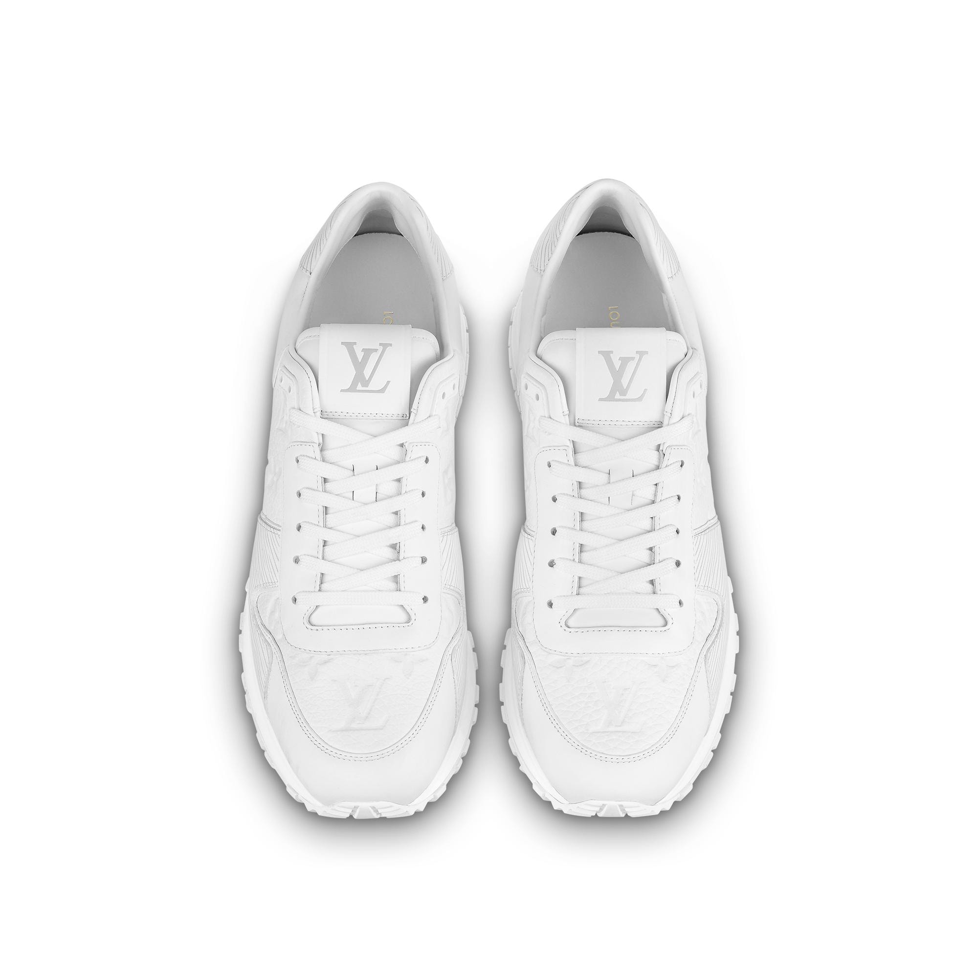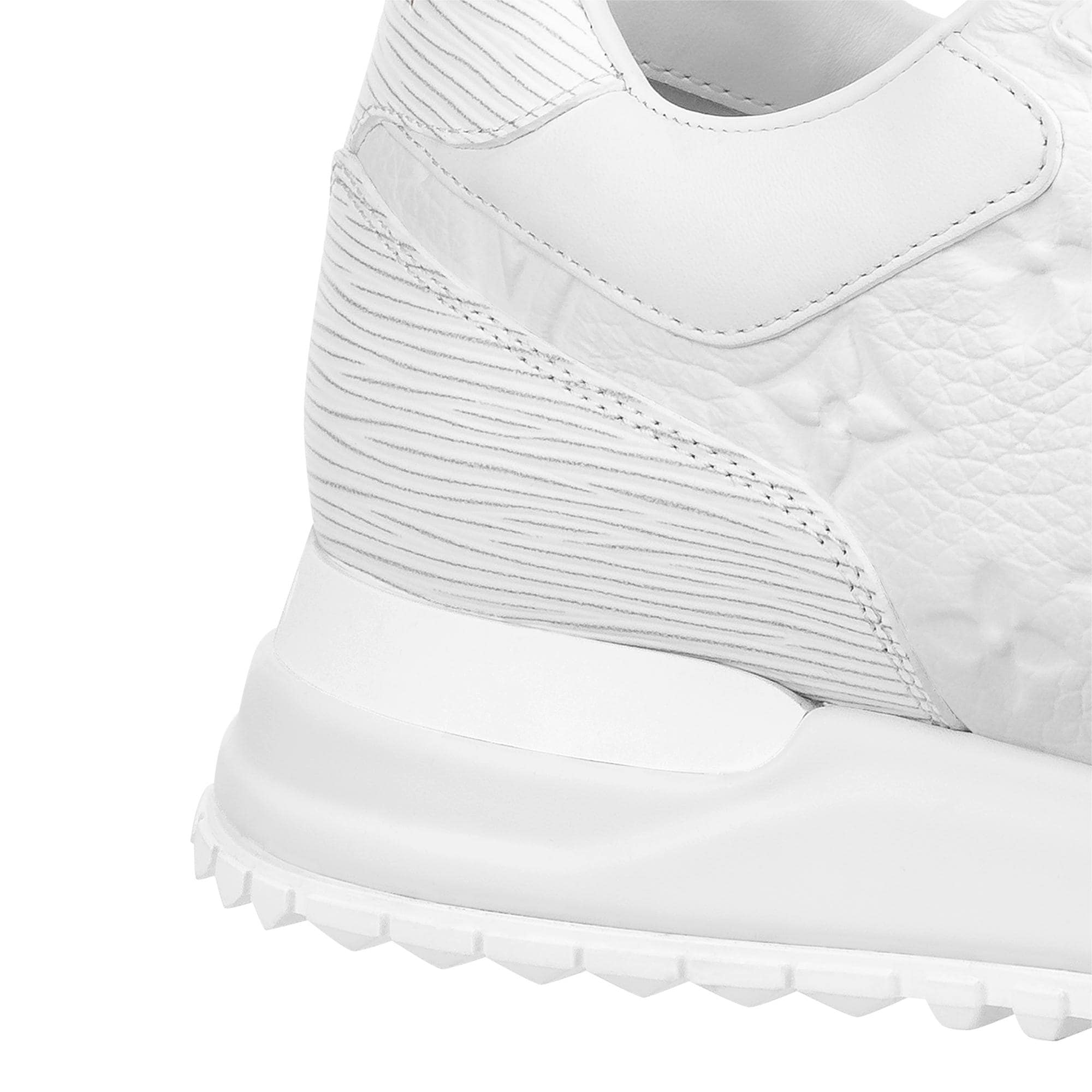 This edition of the Run Away sneaker combines two emblematic leathers: Monogram-embossed grained calf and Epi calf leather. The wedge-shaped rubber outsole, which was inspired by running shoes, is color-matched to the upper for a monochrome look. This model features an LV Initials logo on the tongue and a Louis Vuitton Paris signature on the back. Product details White Monogram-embossed grained calf leather and Epi calf leather Rubber outsole LV Initials on the tongue Louis Vuitton signature on the back Made in Italy1A9ZK8 Louis Vuitton Run Away Sneaker - Men - ShoesMen - Shoes - Sneakers - Run Away Sneaker