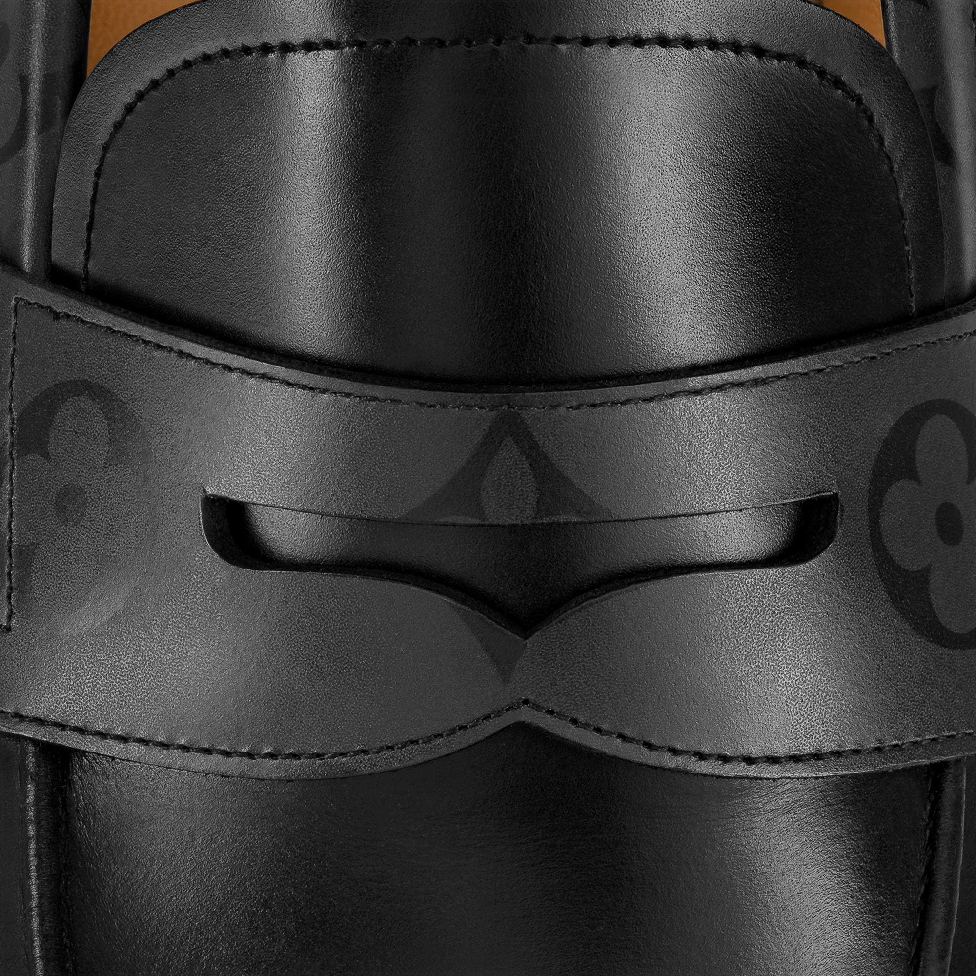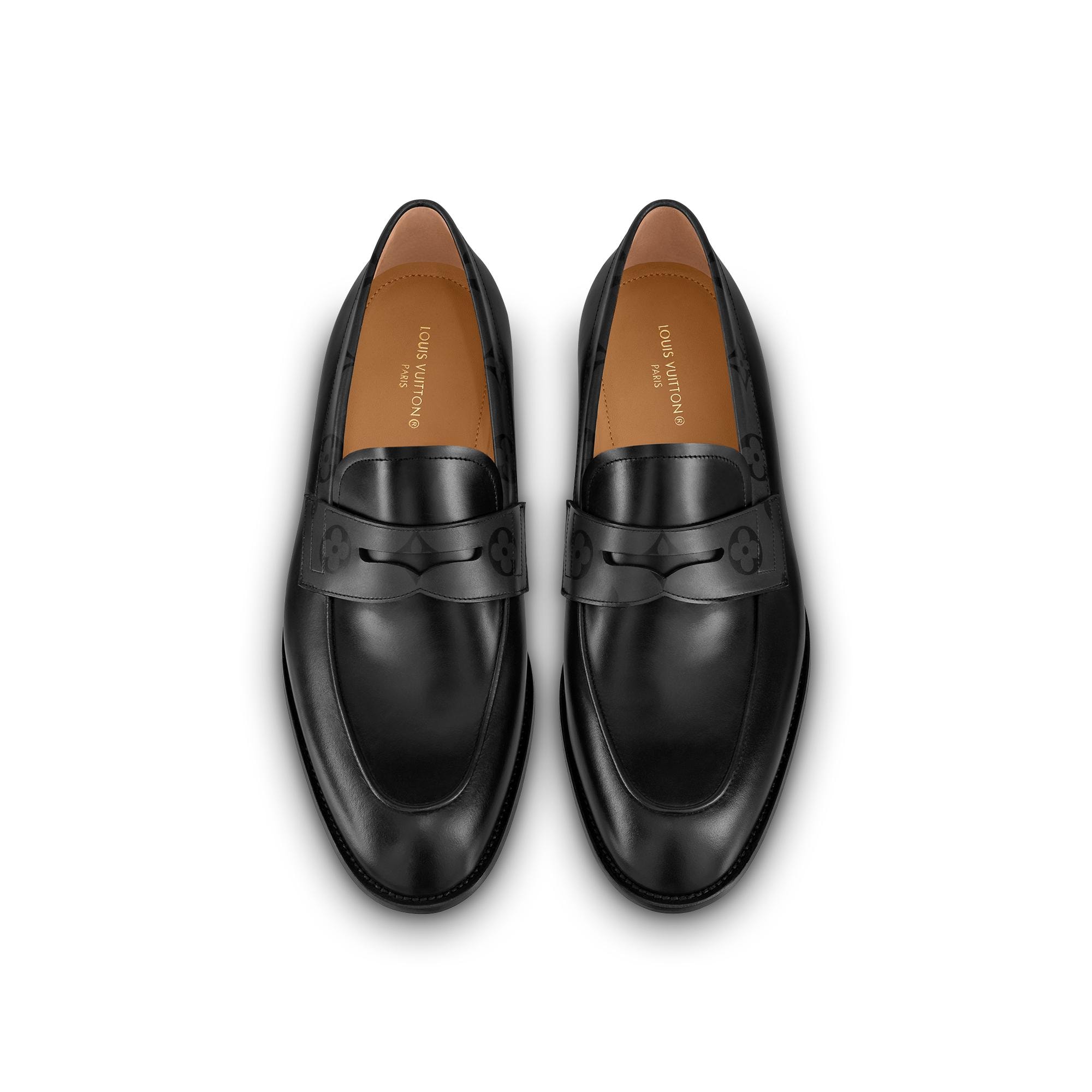 The Saint Germain loafer is crafted from extremely supple waxed calf leather. Its elegant lines are complemented by a discreet Monogram pattern on the collar and strap. Testifying to Louis Vuitton's shoemaking know-how, this model has a traditional sacchetto construction for lightness and flexibility, and is finished with a fine leather outsole. Product details Black Waxed calf leather and Monogram waxed calf leather Hand-crafted patina Sacchetto construction Leather outsole Made in Italy1A9HNJ BlackLouis Vuitton Saint Germain Loafer - Men - ShoesMen - Shoes - Loafers and Moccasins - Saint Germain Loafer