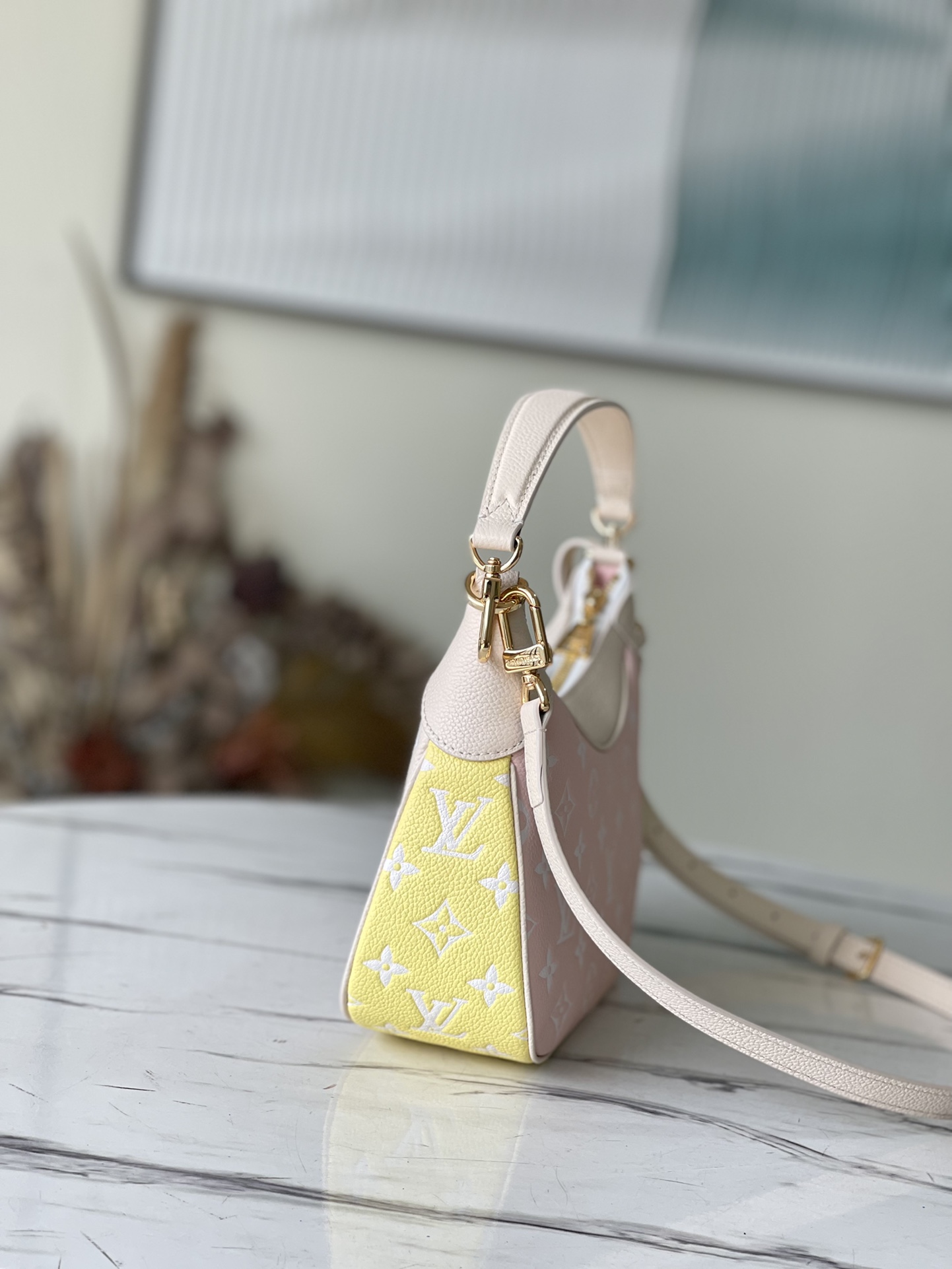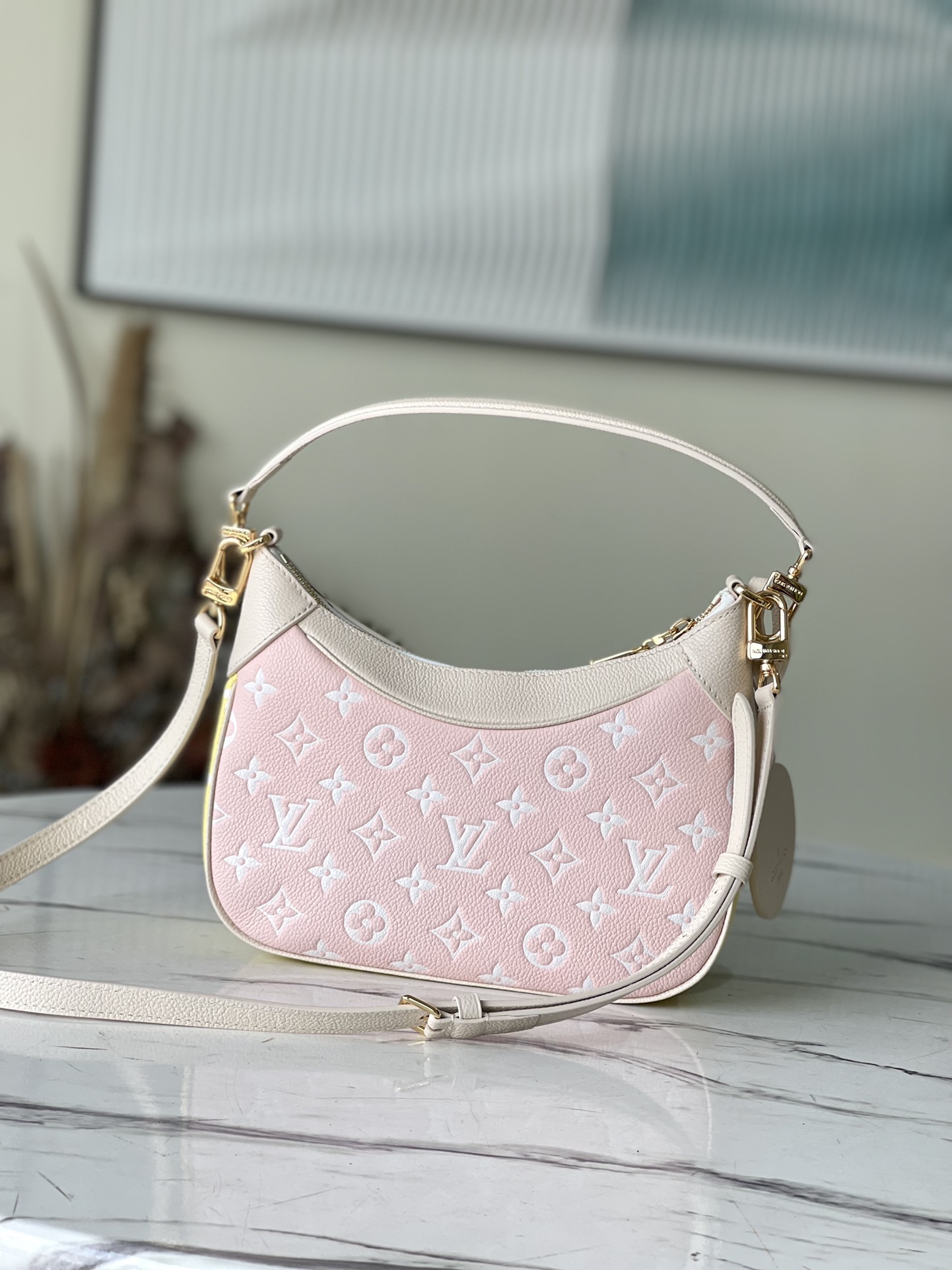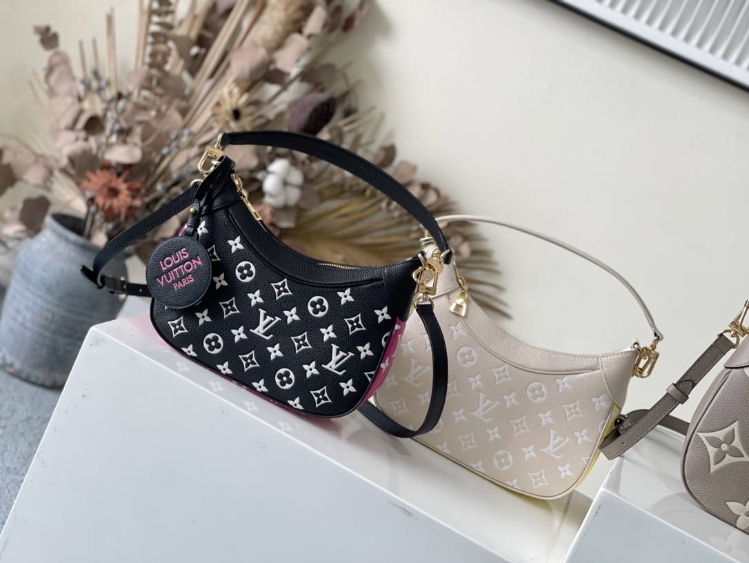 A mini-hobo bag that hangs close to the shoulder, the Bagatelle BB bag is made from Monogram Empreinte leather with the Monogram pattern printed then embossed on the leather. This midday-to-midnight bag is incredibly versatile. It can be carried as a on-trend baguette-hobo, worn effortlessly on the elbow, or cross-body with its removable strap. Detailed Features 8.7 x 5.5 x 3.5 inches (length x Height x Width) Beige / Pink / Yellow Printed and embossed grained cowhide leather Grained cowhide leather trim Microfiber lining Gold-color hardware Zip closure Inside flat pocket Strap:Removable, adjustable Strap drop: 18.9 inches Strap drop max: 21.3 inches Handle:Single, removable This reference is either Made in France, Spain, Italy or in the US. M46113 Rose Beige M46091 Black / White - Black / White / Pink Louis Vuitton Bagatelle Monogram Empreinte Leather - Women - Handbags Women - Handbags - All Collections - Bagatelle Your browser does not support the video tag. Your browser does not support the video tag.