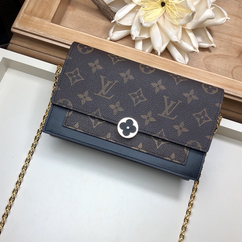 Combining Monogram canvas and calf leather, the Flore chain wallet features a distinctive clasp in the shape of a Monogram Flower. This feminine design is large enough to hold a smartphone as well as other everyday essentials, and can be carried as a clutch, on the shoulder or across the body.