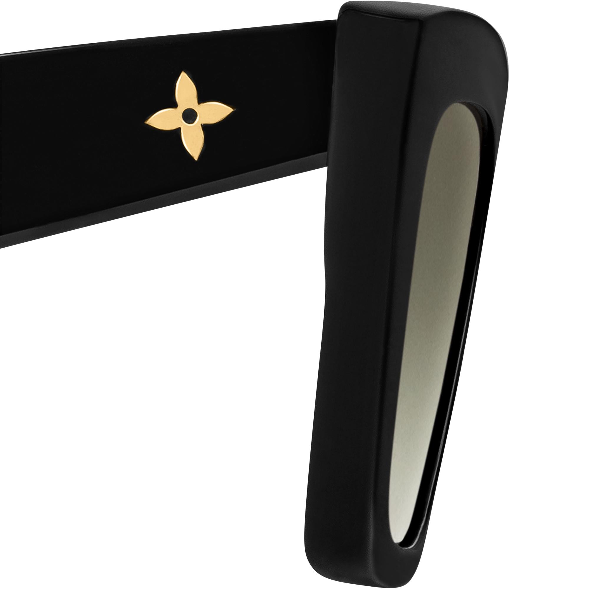 The LV Fame Cat Eye sunglasses offer a modern take on a classic shape. This new addition to the Fall-Winter 2022 collection features sharp lines and a thick frame for a vintage-inspired look. Distinguished House details include LV Initials and Monogram Flowers on either temple and an LV Circle on the inner hinge, all in gold-toned hardware. Product details Black acetate frame Green lenses Cat-eye shape Monogram Flower on right temple and end tips LV Initials on left temple Engraved LV Circle on inner hinge Transmittance:27% UV Protection:100% Filter Category:2 Technical details on UV protection and filters hereZ1723W WLouis Vuitton LV Fame Cat Eye Sunglasses - Women - AccessoriesWomen - Accessories - New This Season - LV Fame Cat Eye Sunglasses