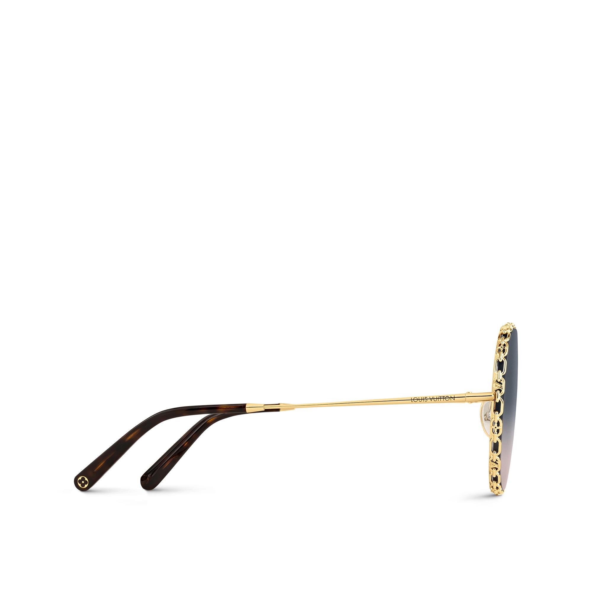 The LV Ring Round sunglasses present a delicate take on the chain motif seen across the Spring-Summer 2022 Cruise collection. Their perfectly round gradient lenses are encircled by fine links that incorporate the iconic LV Initials and Monogram Flowers. The ultra-thin temples of this design are engraved with the House signature. Product details Gold-color hardware frame Gradient blue lenses Round shape My LV Chain rims LV Initials Monogram Flowers Engraved Louis Vuitton signature on temples Transmittance:25% UV Protection:100% Filter Category:2 Technical details on UV protection and filters hereZ1622W Gradient Blue Z1623W Gradiant PinkLouis Vuitton LV Ring Round Sunglasses - Women - AccessoriesWomen - Accessories - Sunglasses - LV Ring Round Sunglasses