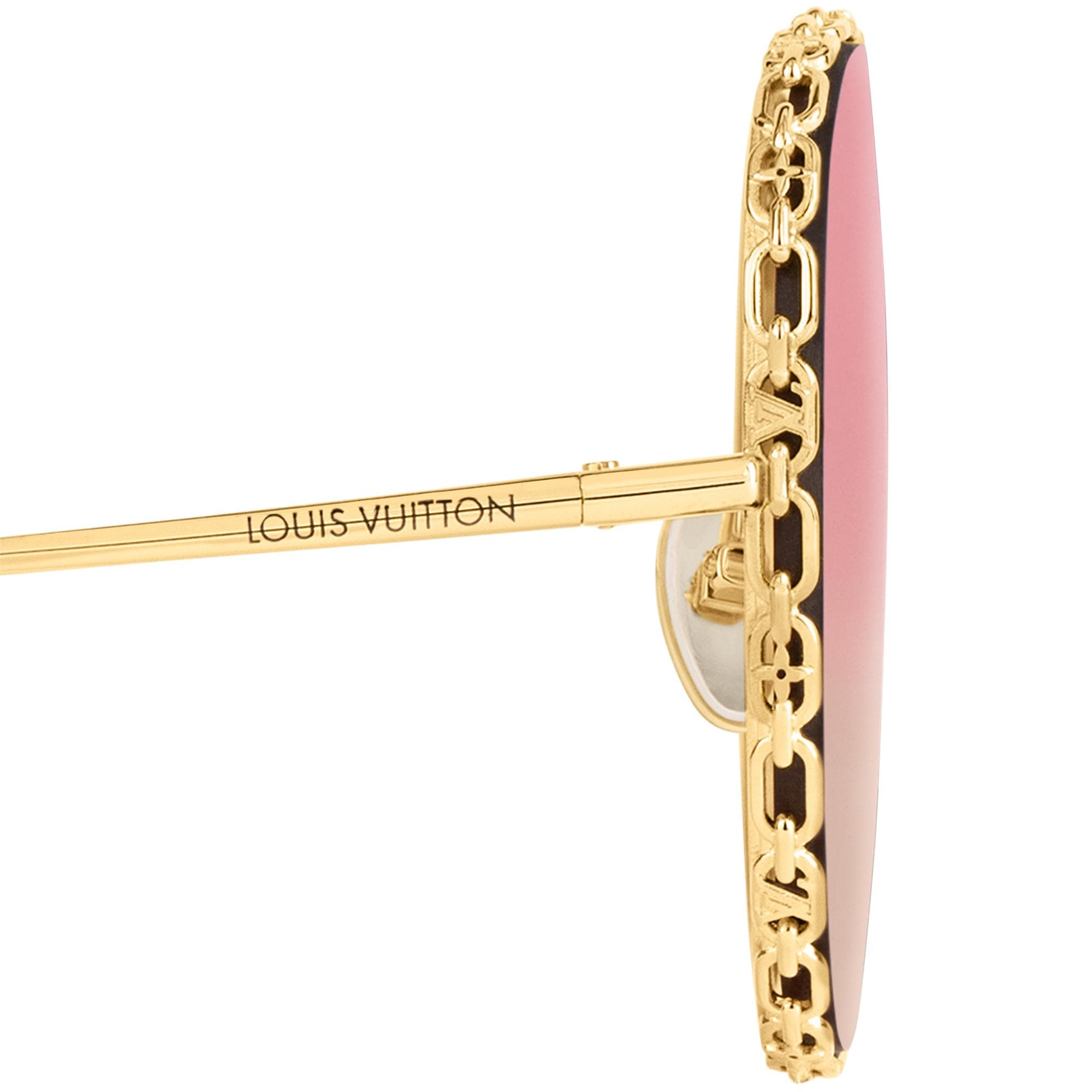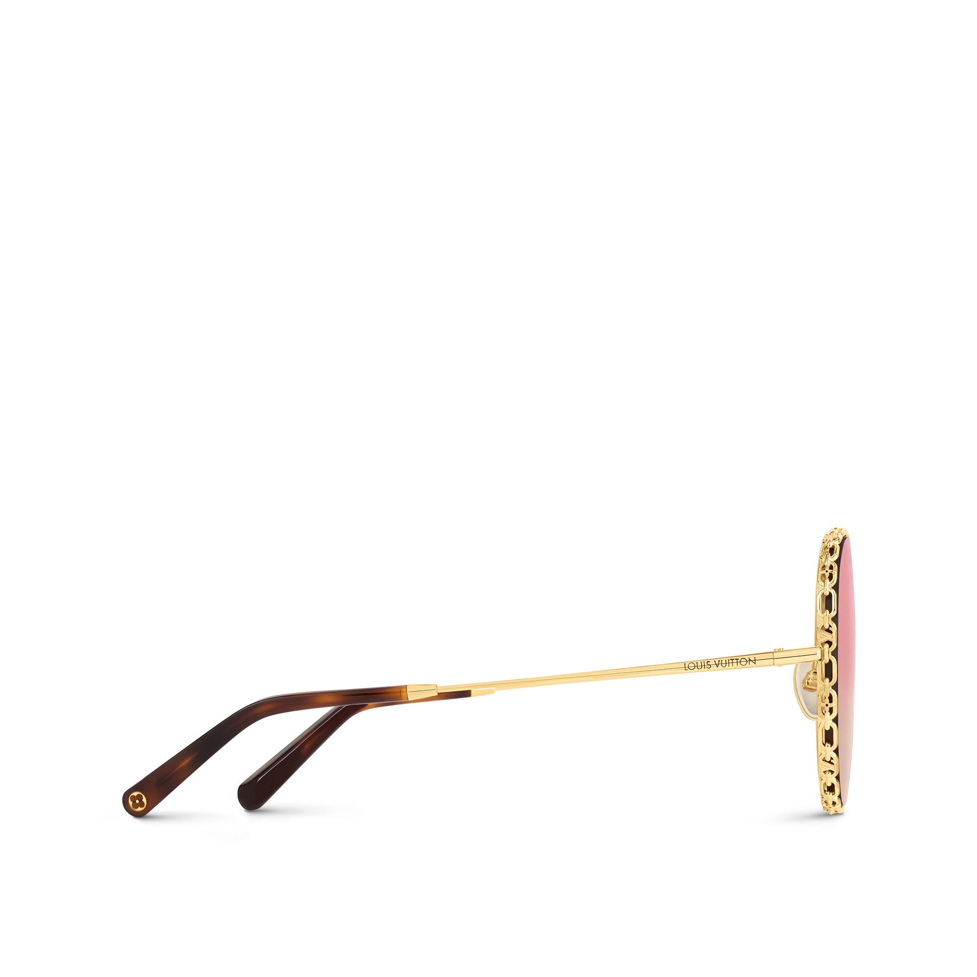 The LV Ring Round sunglasses present a delicate take on the chain motif seen across the Spring-Summer 2022 Cruise collection. Their perfectly round gradient lenses are encircled by fine links that incorporate the iconic LV Initials and Monogram Flowers. The ultra-thin temples of this design are engraved with the House signature. Product details Gold-color hardware frame Gradient pink lenses Round shape Chain link rims LV Initials on rims Monogram Flowers on rims Engraved Louis Vuitton signature on temples Transmittance:45% UV Protection:100% Filter Category:1 Technical details on UV protection and filters hereZ1622W Gradient Blue Z1623W Gradiant PinkLouis Vuitton LV Ring Round Sunglasses - Women - AccessoriesWomen - Accessories - Sunglasses - LV Ring Round Sunglasses