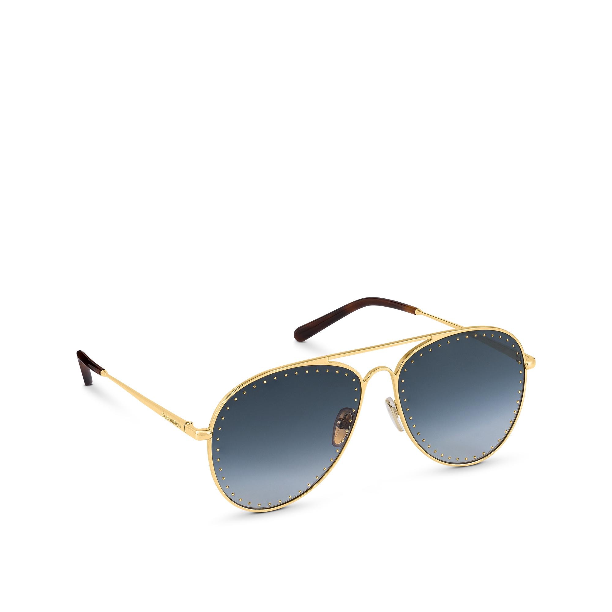 These LV Trunk Pilot sunglasses inject a dose of chic into the classic aviator style. The sleek slim frame, fitted with a double bridge, is elegantly offset by studded lenses that reference the House's iconic trunks. Fine details include the tortoise shell-effect end tips and a finely engraved Louis Vuitton signature on the temples. Product details Gold-color hardware frame Tortoise acetate temple tips Dark blue lenses Pilot shape Trunk studs around lenses Engraved Louis Vuitton signature on temples Transmittance:24% UV Protection:100% Filter Category:2 Technical details on UV protection and filters hereZ1506U Dark Blue Z1507U Brown Z1508U PinkLouis Vuitton LV Trunk Pilot Sunglasses - Women - AccessoriesWomen - Accessories - Sunglasses - LV Trunk Pilot Sunglasses