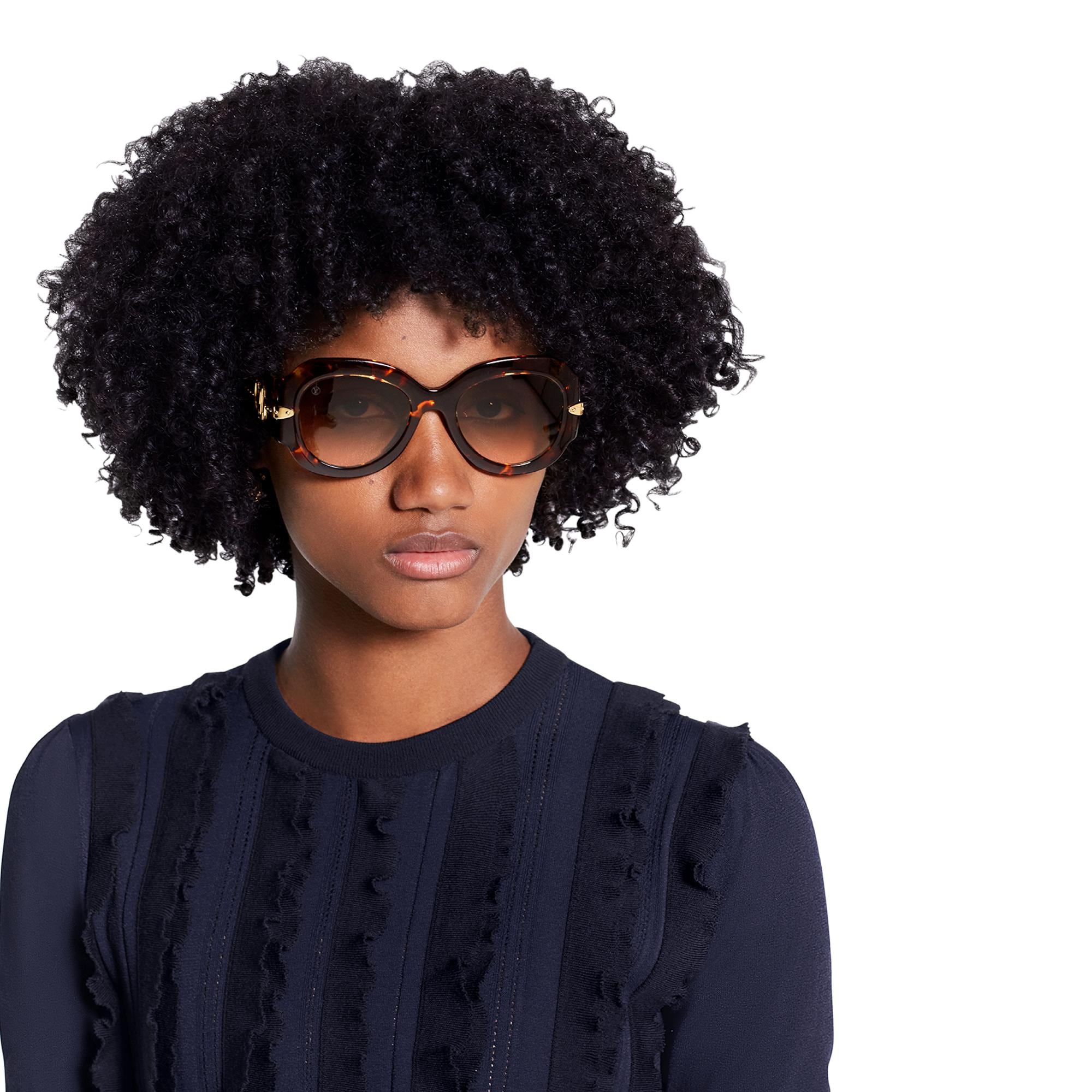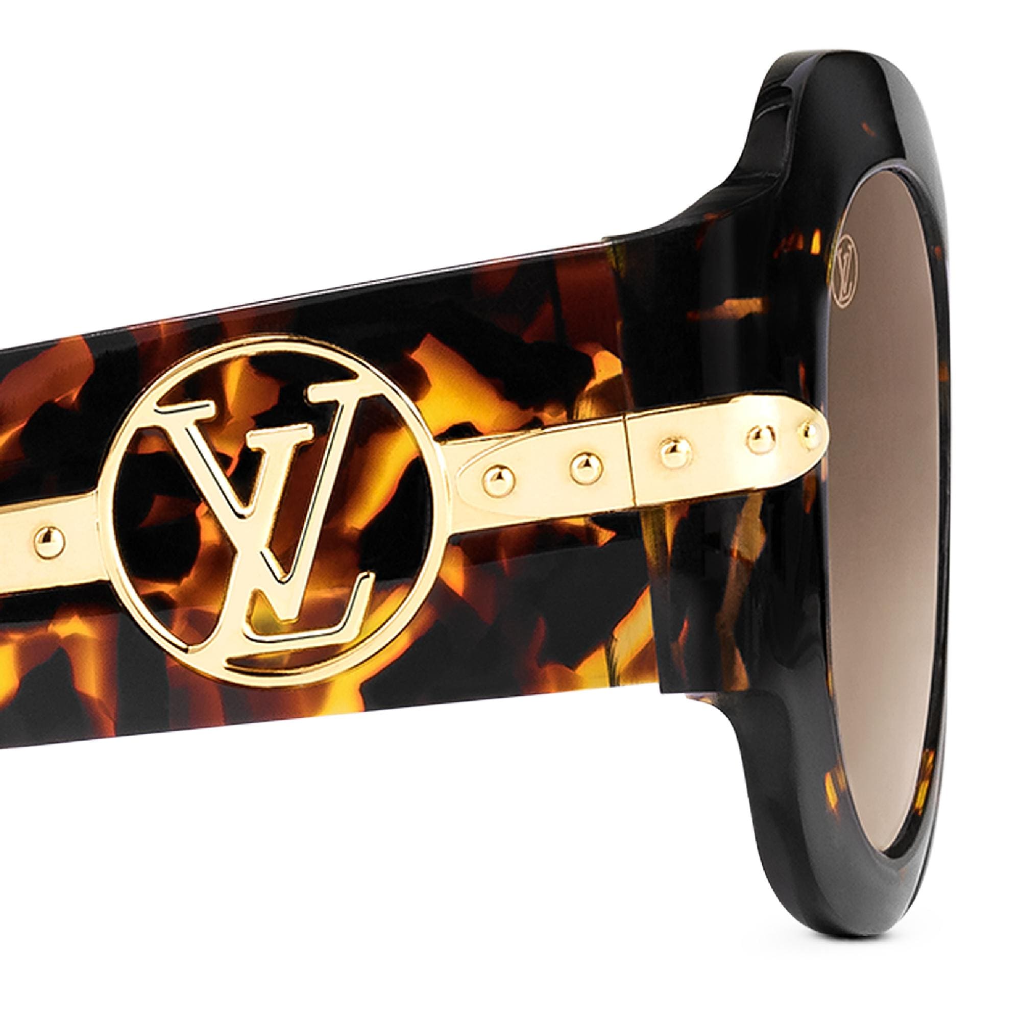 Referencing Louis Vuitton's trunk-making heritage, the sophisticated Paris Texas sunglasses are a fresh update on the classic acetate square frame. Trunk corner-inspired metal pieces outline the frame and studs on a gold-tone polished metal plate run along the temples. An intricate LV Circle logo in gold-color metal over the temple adds further signature embellishment. Product details Tortoise frame Gradient Brown lenses Acetate Gold-color metal pieces inserted in acetate frame LV Circle over temples Square frame for round and oval face shapes Transmittance:23% UV Protection:100% Filter Category:2 Technical details on UV protection and filters hereZ1133E Dark TortoiseLouis Vuitton Paris Texas Sunglasses - Women - AccessoriesWomen - Accessories - Sunglasses - Paris Texas Sunglasses
