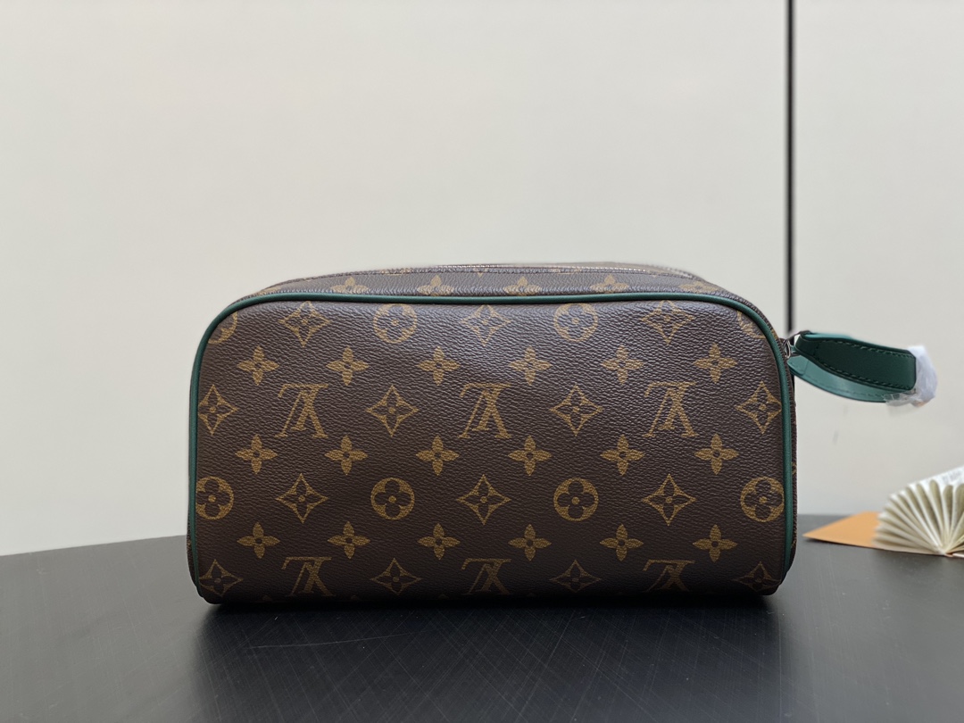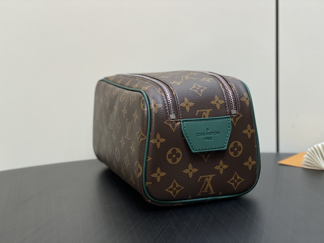 Sturdy and practical, the Dopp Kit in Monogram Macassar coated canvas is adorned with colored piping and colored leather on the handle attached to the double zipper. Designed for storing grooming essentials and toiletries, it has a washable lining in the same color as the color of the exterior details. Product details 11.0 x 5.9 x 6.5 inches (length x Height x Width)
