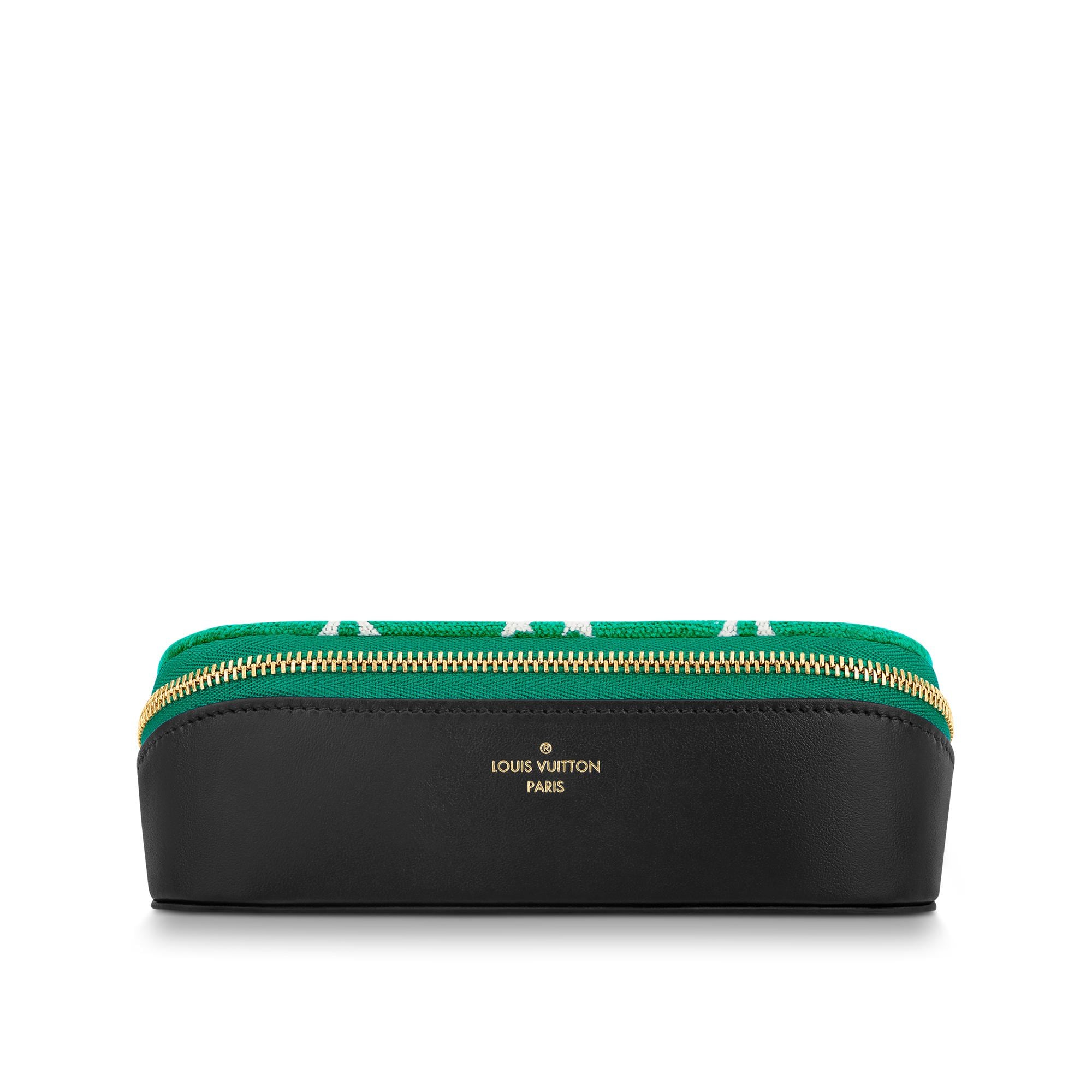 The GM sunglasses case from the Pre-Fall 2022 Collection has a sporty look inspired by grass tennis courts. The Monogram jacquard velvet and leather pouch features the Louis Vuitton signature and zip closure in gold-color hardware. A microfiber lining keeps frames safe and secure on the go. Product details 6.7 x 3.3 x 2.6 inches (length x Height x Width) 6.5 x 2.8 x 2.2 inches/16.5 x 7 x 5.5 cm Monogram jacquard velvet Leather Textile Gold-color hardware Louis Vuitton signatureGI0770 Louis Vuitton GM Sunglasses Case Monogram Velours - Art Of Living - Trunks and TravelArt Of Living - Trunks and Travel - Travel Accessories - GM Sunglasses Case